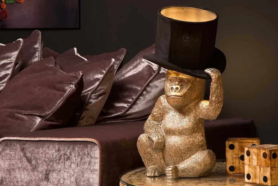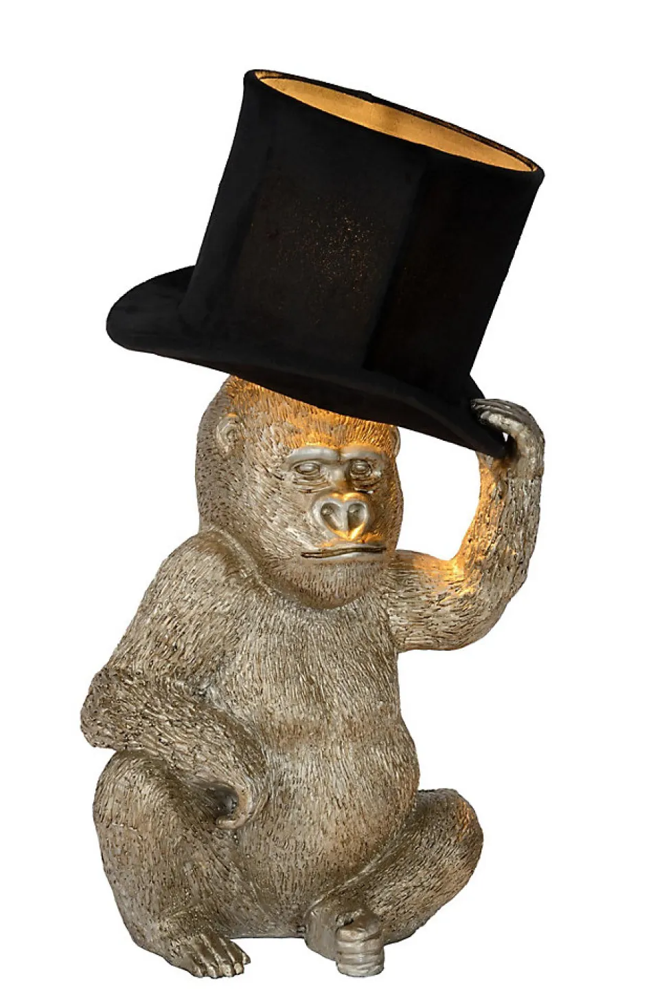 Chapeau à cette sympathique lampe de table. Extravaganza Gust apporte une touche d’humour tout en élégance dans votre salon, votre chambre ou votre bureau. Le gorille Gust en plastique – n’ayez pas peur de lui – tend la main gauche pour vous saluer avec son chapeau. Et pas n’importe quel chapeau ! Celui-ci renferme une ampoule. Son sommet ouvert laisse la lumière se diffuser vers le haut, tandis que l’espace séparant la tête du gorille et le chapeau distribue des rayons de lumière vers le bas. Allumez cette lumière extravagante via l’interrupteur du cordon et mettez-vous à l’aise. Gorilla Gust vous montrera comment faire.Caractéristiques uniques:• Utilisable avec une source lumineuse LED• Avec un interrupteur On/off sur le câble• Fabriqué en synthétiquePrincipales caractéristiques du produit:• Consommation énergétique: 1x40W / 230V / Sans intensité variable (Ampoule non incluse)• Dimensions: Ø22 cm Haut.46 cm• 2 Ans garantie sur le luminaire / source de lumière appropriée est EAN: 5411212490759Pourquoi choisir l’éclairage Lucide?Lucide incarne un design innovant, un savoir-faire artisanal et une fiabilité exemplaire. En tant qu’entreprise familiale belge avec plus de trois décennies d’expertise, nous concevons des éclairages de haute qualité qui enrichissent et transforment chaque espace, tant intérieur qu’extérieur. Notre collection polyvalente comprend des luminaires durables et des sources lumineuses économes en énergie, soigneusement conçus par nos propres experts et fabriqués selon les normes CE les plus strictes. Grâce à notre large gamme, nous vous proposons toujours une solution d’éclairage adaptée, quel que soit le style ou l’espace. Ainsi, nous illuminons non seulement votre espace de vie mais aussi votre processus de choix dans la recherche d’un éclairage de qualité et abordable. Chez Lucide, nous combinons innovation et savoir-faire pour un éclairage qui ajoute non seulement…