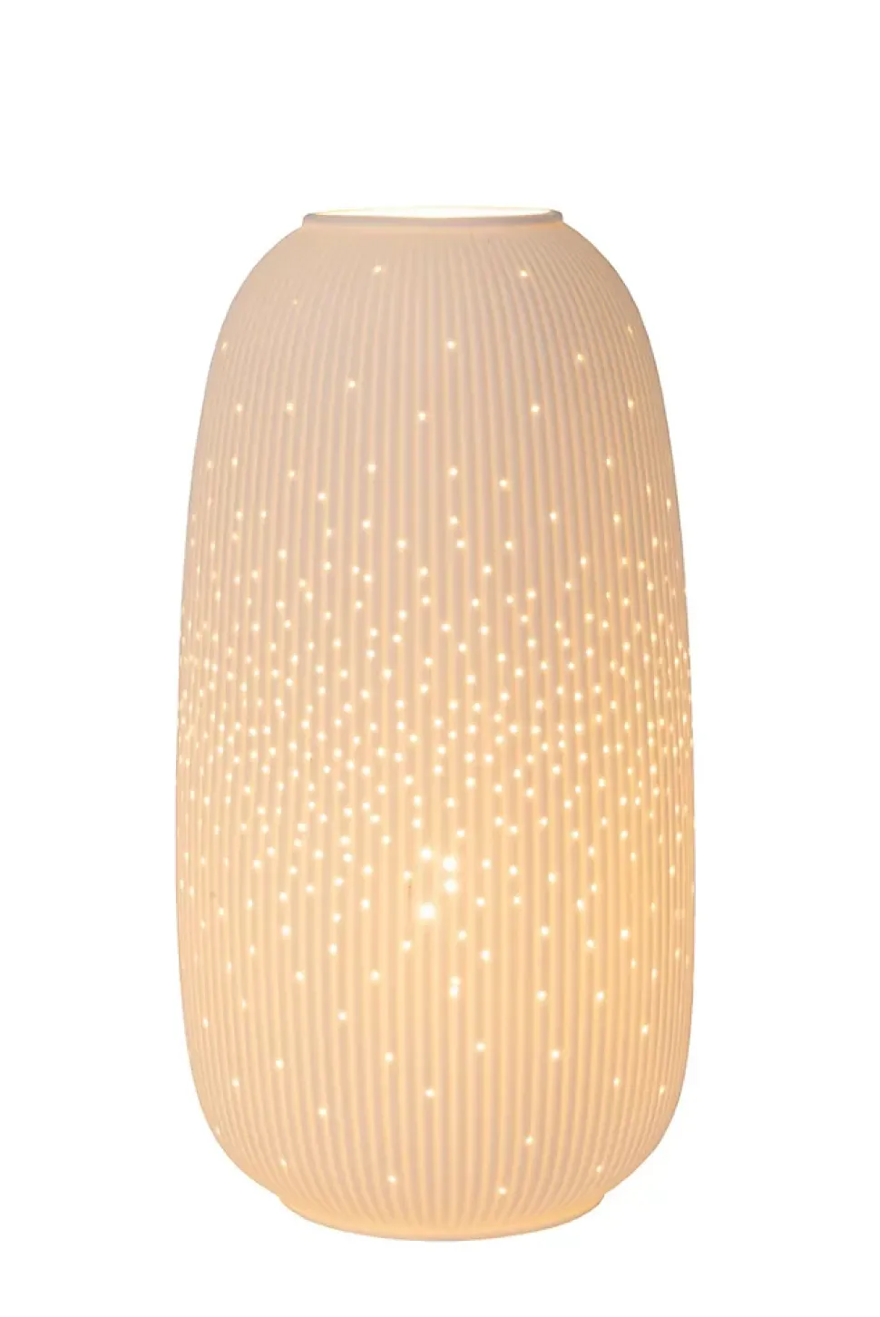 Ajoutez un accessoire rétro amusant à votre intérieur avec cette lampe de table originale. Vous pouvez profiter de Flores aussi bien avec la source lumineuse allumée qu’éteinte. Cette lampe de table en porcelaine est gracieusement élégante grâce à sa forme allongée. Avec ses ouvertures dispersées dans l’armature, Flores éclaire de manière ludique n’importe quelle pièce. Elle trouvera parfaitement sa place sur un rebord de fenêtre, une commode, une table de chevet ou une table basse. Un interrupteur situé sur le cordon permet d’allumer ou d’éteindre la lampe. Avec une largeur de près de 18 centimètres et une hauteur d’un peu plus de 33 centimètres, Flores n’est pas une petite lampe. Flores est compatible avec une ampoule LED.Caractéristiques uniques:• Utilisable avec une source lumineuse LED• Avec un interrupteur On/off sur le câble• Fabriqué en porcelainePrincipales caractéristiques du produit:• Consommation énergétique: 1x25W / 230V / Sans intensité variable (Ampoule non incluse)• Dimensions: Ø17,5 cm Haut.33,2 cm• 2 Ans garantie sur le luminaire / source de lumière appropriée est EAN: 5411212491183Pourquoi choisir l’éclairage Lucide?Lucide incarne un design innovant, un savoir-faire artisanal et une fiabilité exemplaire. En tant qu’entreprise familiale belge avec plus de trois décennies d’expertise, nous concevons des éclairages de haute qualité qui enrichissent et transforment chaque espace, tant intérieur qu’extérieur. Notre collection polyvalente comprend des luminaires durables et des sources lumineuses économes en énergie, soigneusement conçus par nos propres experts et fabriqués selon les normes CE les plus strictes. Grâce à notre large gamme, nous vous proposons toujours une solution d’éclairage adaptée, quel que soit le style ou l’espace. Ainsi, nous illuminons non seulement votre espace de vie mais aussi votre processus de choix dans la recherche d’un éclairage de qualité et …