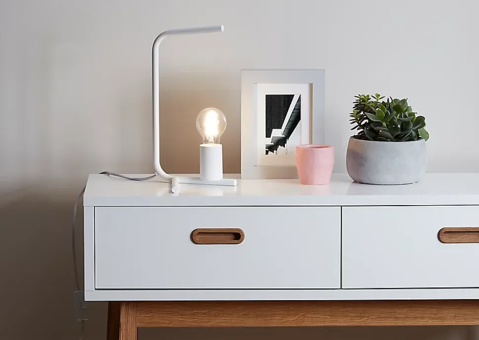 Nos lampes à poser ont été conçues dans un certain nombre de styles, de finitions et de caractéristiques pour vous permettre de trouver facilement celle qui vous convient. Cette lampe à poser blanche apporte une touche décorative et met parfaitement en valeur les éléments et les détails