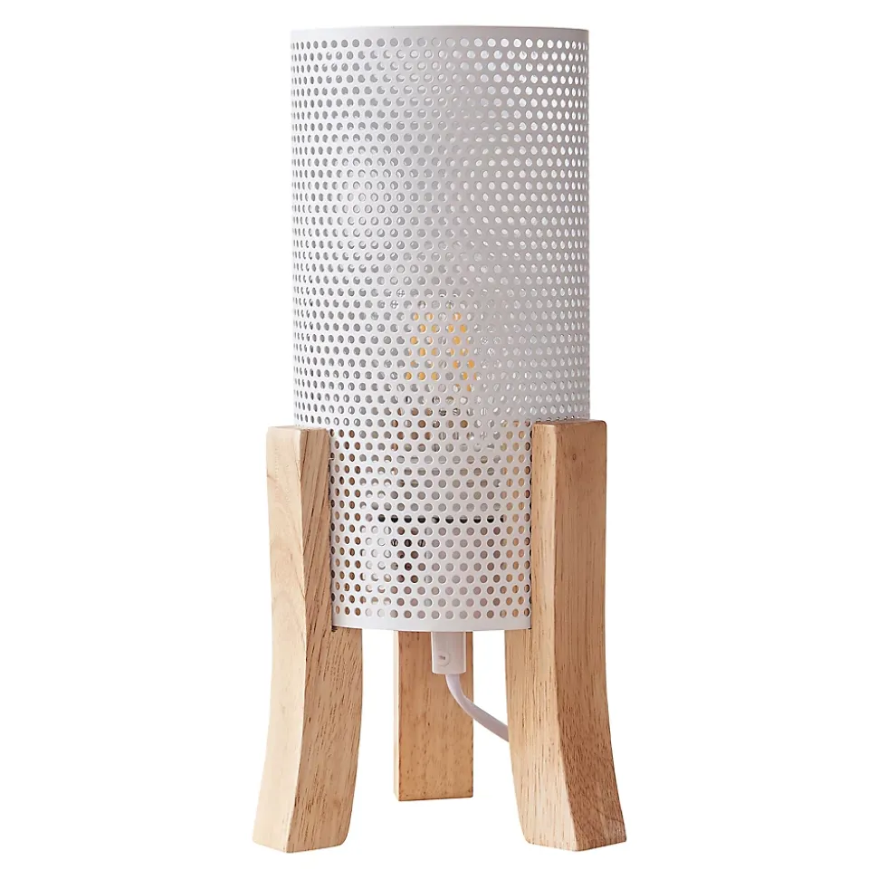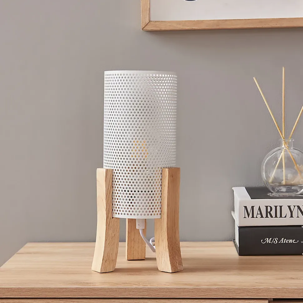 Lampe de tableLampe de table au design chic et intemporel, parfaite pour compléter tout espace de vie ou de travail.Elle trouve aisément sa place comme lampe de lecture sur votre table de nuit et dispose d’un câble suffisamment long qui vous offre des possibilités de positionnement flexibles. Vous pouvez ainsi éclairer votre chambre de manière optimale sans grand effort.La douille de ce modèle élégant est recouverte d‘un abat-jour décoratif, ce qui met encore davantage en valeur son apparence.Points forts du produit :- lampe moderne et stylée pour une ambiance chaleureuse- idéale comme source de lumière supplémentaire dans l’espace de vie- design exceptionnel et attrayant pour chaque maison- éclairage efficace grâce à l’abat-jour métallique à l’aspect maillé- long câble permettant un placement optimal- avec une douille pour ampoules adaptéesCaractéristiques techniques :- douille de lampe : 1 x E27, max. 60W (livré sans ampoule)- tension : 230V, 50Hz- type d’interrupteur : interrupteur intermédiaire à cordon- degré de protection : classe de protection IIDimensions :- totales (h x l x p) : 30 x 14 x 14 cm- abat-jour (h x Ø) : 22 x 11 cm- longueur du câble : 180 cmMatière :- structure : bois- abat-jour : métalCouleur :- structure : couleur bois- abat-jour : blancContenu de la livraison :1 x lampe de table (l’ampoule ne fait pas partie de l’offre)Produit de la marque :lux.pro