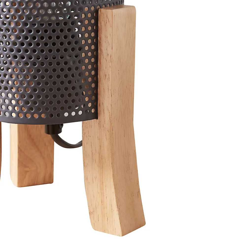 Lampe de tableLampe de table au design chic et intemporel, parfaite pour compléter tout espace de vie ou de travail.Elle trouve aisément sa place comme lampe de lecture sur votre table de nuit et dispose d’un câble suffisamment long qui vous offre des possibilités de positionnement flexibles. Vous pouvez ainsi éclairer votre chambre de manière optimale sans grand effort.La douille de ce modèle élégant est recouverte d‘un abat-jour décoratif, ce qui met encore davantage en valeur son apparence.Points forts du produit :- lampe moderne et stylée pour une ambiance chaleureuse- idéale comme source de lumière supplémentaire dans l’espace de vie- design exceptionnel et attrayant pour chaque maison- éclairage efficace grâce à l’abat-jour métallique à l’aspect maillé- long câble permettant un placement optimal- avec une douille pour ampoules adaptéesCaractéristiques techniques :- douille de lampe : 1 x E27, max. 60W (livré sans ampoule)- tension : 230V, 50Hz- type d’interrupteur : interrupteur intermédiaire à cordon- degré de protection : classe de protection IIDimensions :- totales (h x l x p) : 30 x 14 x 14 cm- abat-jour (h x Ø) : 22 x 11 cm- longueur du câble : 180 cmMatière :- structure : bois- abat-jour : métalCouleur :- structure : couleur bois- abat-jour : grisContenu de la livraison :1 x lampe de table (l’ampoule ne fait pas partie de l’offre)Produit de la marque :lux.pro