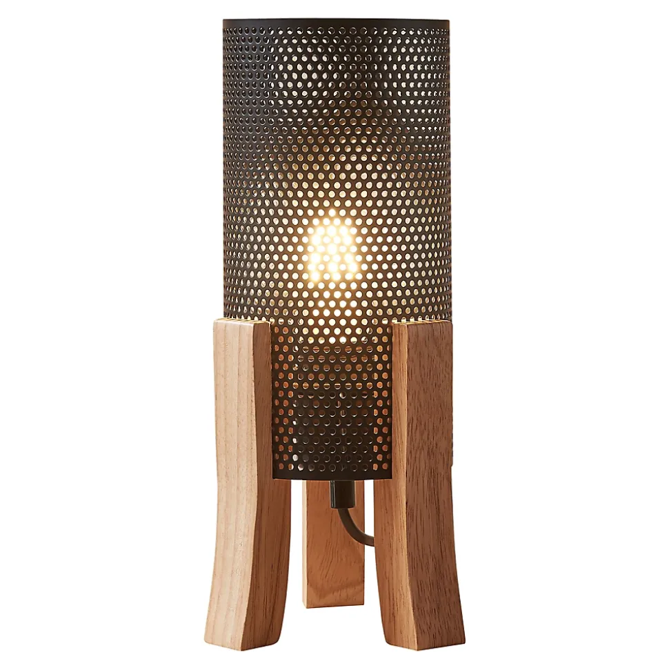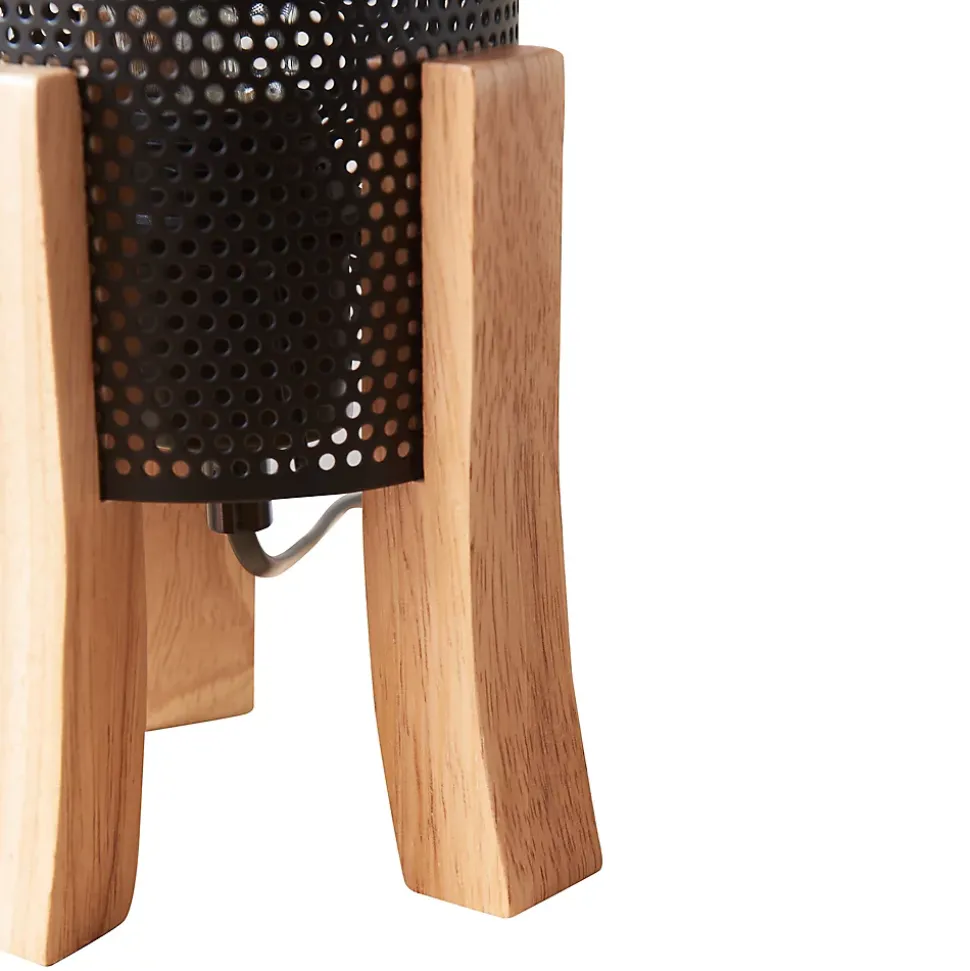 Lampe de tableLampe de table au design chic et intemporel, parfaite pour compléter tout espace de vie ou de travail.Elle trouve aisément sa place comme lampe de lecture sur votre table de nuit et dispose d’un câble suffisamment long qui vous offre des possibilités de positionnement flexibles. Vous pouvez ainsi éclairer votre chambre de manière optimale sans grand effort.La douille de ce modèle élégant est recouverte d‘un abat-jour décoratif, ce qui met encore davantage en valeur son apparence.Points forts du produit :- lampe moderne et stylée pour une ambiance chaleureuse- idéale comme source de lumière supplémentaire dans l’espace de vie- design exceptionnel et attrayant pour chaque maison- éclairage efficace grâce à l’abat-jour métallique à l’aspect maillé- long câble permettant un placement optimal- avec une douille pour ampoules adaptéesCaractéristiques techniques :- douille de lampe : 1 x E27, max. 60W (livré sans ampoule)- tension : 230V, 50Hz- type d’interrupteur : interrupteur intermédiaire à cordon- degré de protection : classe de protection IIDimensions :- totales (h x l x p) : 30 x 14 x 14 cm- abat-jour (h x Ø) : 22 x 11 cm- longueur du câble : 180 cmMatière :- structure : bois- abat-jour : métalCouleur :- structure : couleur bois- abat-jour : noirContenu de la livraison :1 x lampe de table (l’ampoule ne fait pas partie de l’offre)Produit de la marque :lux.pro