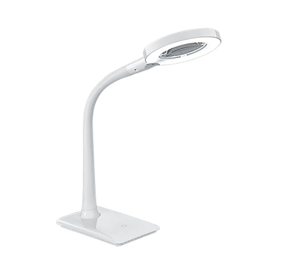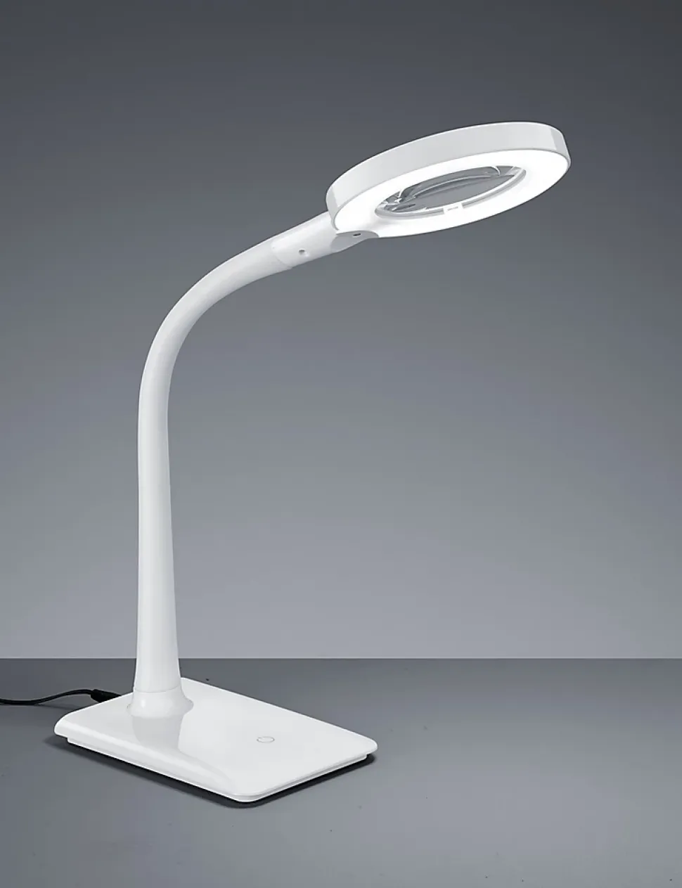 Les caractéristiques techniquesLa lampe de table LED Lupo de TRIO est idéale pour la lecture, les travaux de précision ou le bricolage. Avec son bras flexible et sa fonction de grossissement x3, elle s’adapte parfaitement à vos besoins.Elle intègre une LED SMD de 5W offrant une luminosité de 550 lumens et une température de couleur de 3500K (blanc neutre), idéale pour un éclairage précis et confortable. Son variateur tactile à 4 positions permet d’ajuster facilement l’intensité lumineuse.Les avantages esthétiques et fonctionnelsLe design blanc épuré et compact de la lampe Lupo s’intègre facilement à tous les intérieurs, qu’il s’agisse d’un bureau, d’un atelier ou d’un coin lecture. Son bras flexible permet un positionnement précis de la lumière selon vos besoins.La loupe intégrée avec un grossissement x3 est parfaite pour les travaux minutieux, offrant confort et efficacité au quotidien.Les performances de la technologie LEDLa technologie LED moderne garantit une économie d’énergie jusqu’à 80 % par rapport aux ampoules halogènes classiques. Elle offre aussi une longue durée de vie, produit moins de chaleur et contribue à la protection de l’environnement.