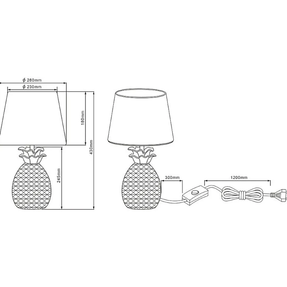 Les caractéristiques techniquesLa lampe de table Led Pineapple est constituée d’un pied en céramique dorée et d’un abat-jour en textile noir.Vous pourrez y adapter une ampoule Led culot E27 d’une puissance maximale de 60 watts pour le grand modèle ou une ampoule Led culot E14 pour le petit modèle. A vous de choisir son intensité et sa température de couleur afin de définir l’ambiance que vous souhaitez.Les avantages esthétiques La lampe à poser Pineapplede Trio a été conçue dans un esprit classique raffiné.Son pied en céramique dorée et son abat-jour en textile noir intérieur doré donneront une touche chaleureuse à votre intérieur.Cette lampe Led a été pensée par les designers de la maison Trio dans un souci d’élégance.Ce luminaire trouvera sa place dans votre salon ou salle à manger. Pineapple existe en deux versions : petit modèle – hauteur 35 cm – culot E14grand modèle – hauteur 43 cm – culot E27