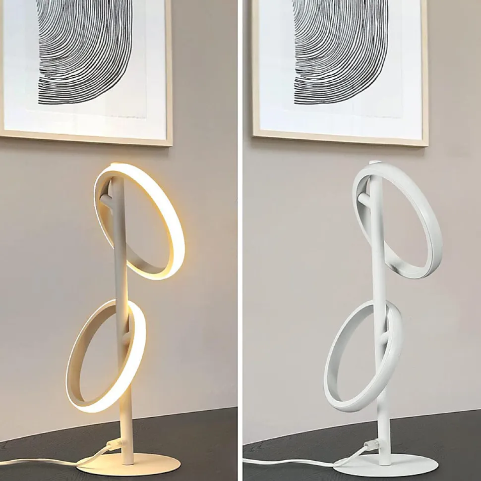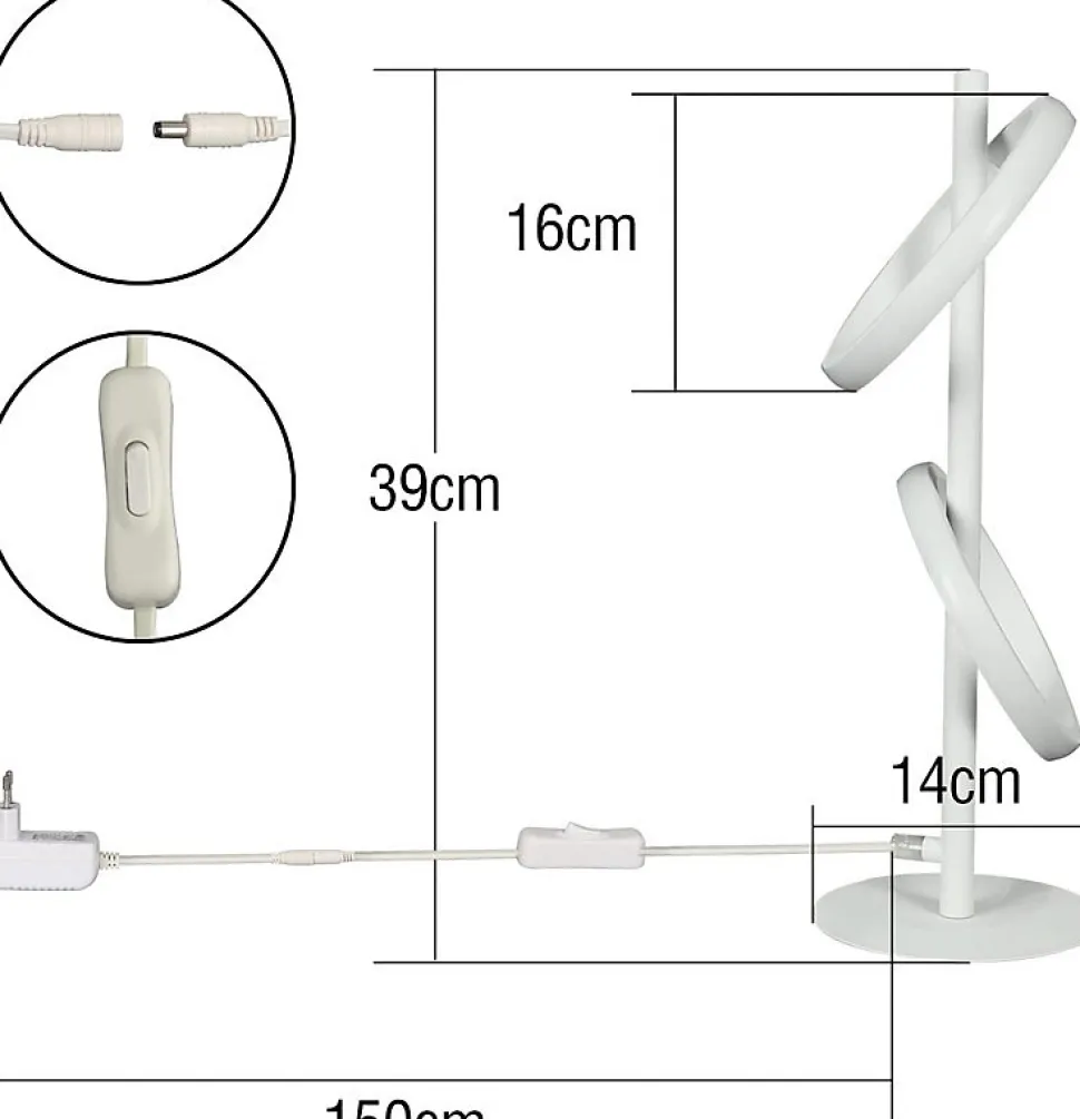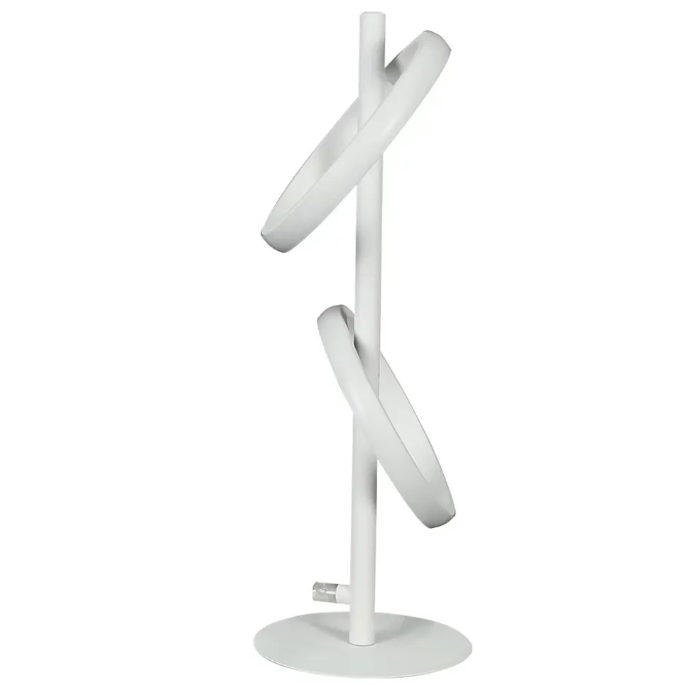 Design : Qu’elle soit utilisée comme élément décoratif sur un rebord de fenêtre, une table d’appoint ou comme source de lumière supplémentaire dans un coin lecture, cette lampe de table LED moderne offre une esthétique harmonieuse et un éclairage agréable. Tous les anneaux LED sont rotatifs et amovibles. Son design unique intègre un module LED fixe qui accentue l’agréable luminosité. D’une puissance de 13 watts, elle est durable et facile à nettoyer. Idéale pour le bureau, la salle à manger, la chambre, le salon, la chambre d’enfant, etc., elle convient à toutes les applications, qu’elle soit utilisée comme lampe de table, lampe de chevet, veilleuse ou lampe de bureau. La lampe de table LED a une plaque de 14 x 0,5 cm, une tension de 230 V et est fabriquée en fer et aluminium. Elle est équipée de deux anneaux LED de Ø 16 cm.