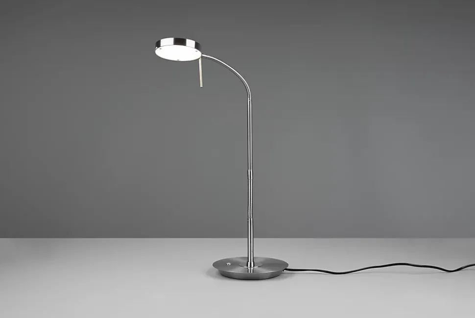 Une lampe de table intelligente et éléganteAvec la lampe de table MONZA de Trio, profitez d’un éclairage hautement personnalisable grâce à son variateur tactile intégré. En un simple geste, ajustez la luminosité et choisissez la température de couleur souhaitée (2300K, 3000K ou 4000K).Un confort visuel optimalSon bras flexible vous permet de diriger la lumière là où vous en avez besoin, que ce soit pour le travail, la lecture ou une ambiance douce. Parfaitement stable et résistante avec sa finition en nickel mat, elle s’intègre discrètement dans tous les intérieurs modernes.Technologie LED efficace et durableLa LED SMD intégrée offre une puissance de 12W pour 1400 lumens, tout en garantissant jusqu’à 30 000 heures de durée de vie. Elle consomme peu, chauffe peu et offre un excellent confort d’éclairage avec un indice de rendu des couleurs supérieur à 80.