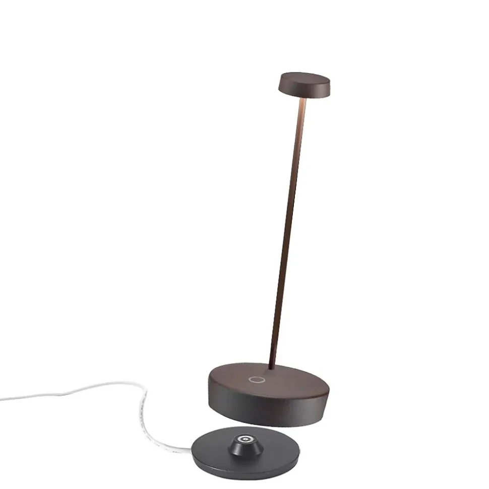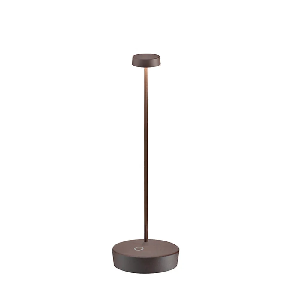 Lampe de table LED Swap Pro en Corten, rechargeable et à intensité variable, avec batterie intégrée de 2 watts.L’autonomie de la lampe LED Swap Pro est de 13 heures à puissance maximale.La batterie est rechargeable via le socle de contact fourni.La lampe de table LED Swap Pro est fabriquée en aluminium avec un corps recouvert de Corten et un diffuseur en polycarbonate.La lampe de table LED est équipée d’un interrupteur tactile sur le socle.La Swap Pro est une lampe design idéale pour les espaces extérieurs, les tonnelles, les bars, les restaurants et les espaces de détente. Elle est également largement utilisée dans les chambres, les salons et les bureaux professionnels. Lampe de table LED design.La lampe Swap Pro est certifiée IP65, ce qui la rend adaptée à une utilisation en intérieur comme en extérieur.La couleur de lumière de la Swap Pro est de 2700 K, avec un flux lumineux de 276 lm.Également disponible en noir et blanc.La Swap Pro est une lampe de table LED de la marque AI LATI.Remarque : le chargeur secteur doit être acheté séparément