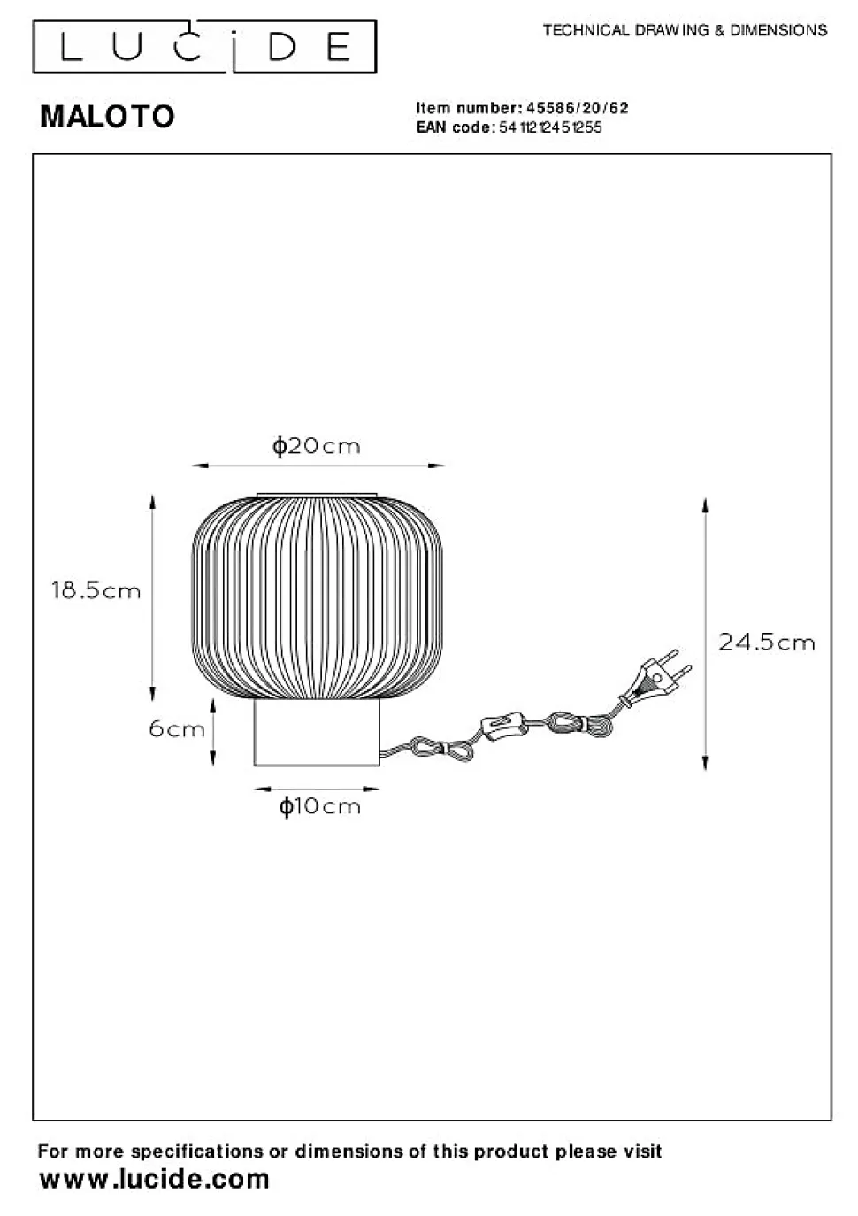 Vous êtes à la recherche d’une petite touche rétro dans votre intérieur ? Cette lampe de table nommée Maloto est probablement faite pour vous. La sphère verte ou ambrée en verre de haute qualité repose sur une élégante base en métal doré. Maloto saura trouver sa place sur toutes les armoires, du salon à la salle à manger. Ou pourquoi ne pas l’utiliser comme veilleuse ? Le cordon en tissu est pourvu d’un interrupteur intégré avec lequel vous pourrez facilement allumer et éteindre la lampe de table.Caractéristiques uniques:• Utilisable avec une source lumineuse LED• Avec un interrupteur On/off sur le câble• Fabriqué en verrePrincipales caractéristiques du produit:• Consommation énergétique: 1x40W / 230V / Sans intensité variable (Ampoule non incluse)• Dimensions: Ø20 cm Haut.24,5 cm• 2 Ans garantie sur le luminaire / source de lumière appropriée est EAN: 5411212491152Pourquoi choisir l’éclairage Lucide?Lucide incarne un design innovant, un savoir-faire artisanal et une fiabilité exemplaire. En tant qu’entreprise familiale belge avec plus de trois décennies d’expertise, nous concevons des éclairages de haute qualité qui enrichissent et transforment chaque espace, tant intérieur qu’extérieur. Notre collection polyvalente comprend des luminaires durables et des sources lumineuses économes en énergie, soigneusement conçus par nos propres experts et fabriqués selon les normes CE les plus strictes. Grâce à notre large gamme, nous vous proposons toujours une solution d’éclairage adaptée, quel que soit le style ou l’espace. Ainsi, nous illuminons non seulement votre espace de vie mais aussi votre processus de choix dans la recherche d’un éclairage de qualité et abordable. Chez Lucide, nous combinons innovation et savoir-faire pour un éclairage qui ajoute non seulement de l’ambiance, mais transforme chaque maison en foyer.