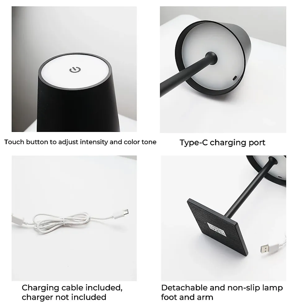 « TEKA », une lampe de table LED sans fil au design moderne et polyvalent qui redéfinit l’éclairage à la fois en intérieur et en extérieur.Avec un degré de protection IP44, « TEKA » est conçue pour résister aux conditions défavorables telles que la pluie légère et la poussière, en en faisant un choix parfait pour éclairer les jardins, les terrasses ou les zones de piscine, ainsi que pour compléter la décoration intérieure avec une touche de sophistication.Cette lampe offre une expérience d’éclairage personnalisée grâce à son système CCT, qui permet de modifier la température de couleur entre blanc chaud, blanc neutre et blanc froid. De plus, elle est contrôlée de manière intuitive via un système tactile et se recharge facilement via USB de type C (câble inclus).Caractéristiques principales de « TEKA »:Design moderne et polyvalent qui s’adapte à tous les environnements.Indice de protection IP44 pour une utilisation en intérieur et en extérieur.Système CCT pour ajuster la température de couleur selon les préférences et les besoins.Contrôle tactile intuitif pour une manipulation facile.Recharge via un port USB de type C pour plus de commodité.Possibilité de régler l’intensité lumineuse pour créer l’ambiance parfaite à tout moment de la journée ou de la nuit.Utilisations et applications de « TEKA »:Éclairage extérieur pour les jardins, les terrasses et les zones de piscine.Lampe de table en intérieur, idéale pour les tables de chevet ou comme élément de décoration.Éclairage pour des événements en plein air, tels que les pique-niques et les barbecues.Éclairage dans les restaurants ou les cafés en plein air pour créer des ambiances chaleureuses et élégantes.Avec « TEKA », profitez d’un éclairage personnalisé et polyvalent n’importe où et n’importe quand.