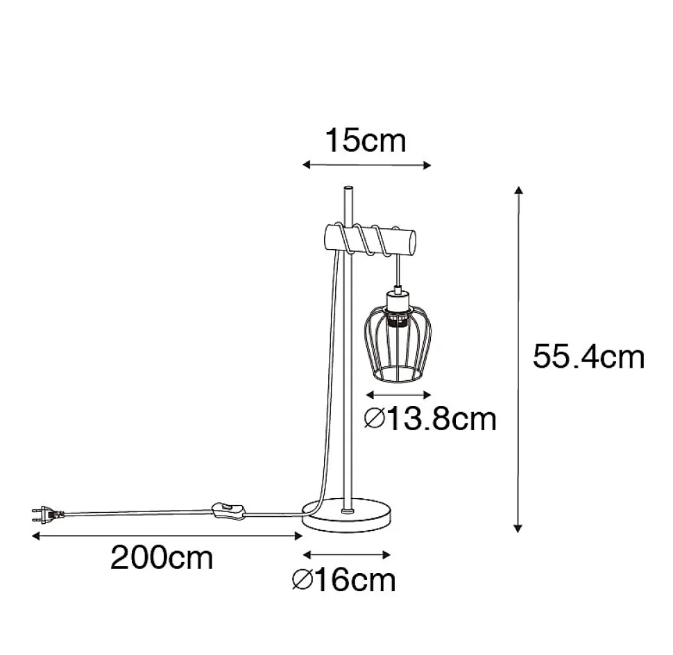 Vous recherchez une lampe de table d’ambiance ? Stronk est exactement ce qu’il vous faut ! Un luminaire à la fois mignon et rustique. La lampe de table est en bois et en acier, l’acier étant fini en noir. Elle mesure 55,4 cm de haut, 13,8 cm de long et 13,8 cm de large. La plaque de montage a un diamètre de 16 cm et une hauteur de 2,5 cm. L’abat-jour en acier a un diamètre de 13,8 cm et une hauteur de 14 cm. Stronk est livrée avec un cordon et une prise de 180 cm. Vous pouvez compléter la lampe de table avec une ampoule à culot E27 (60 W maximum). N’oubliez pas de la commander séparément. Stronk est compatible avec un variateur externe (non inclus). Créez une ambiance chaleureuse dans votre maison avec la lampe de table rustique Stronk.