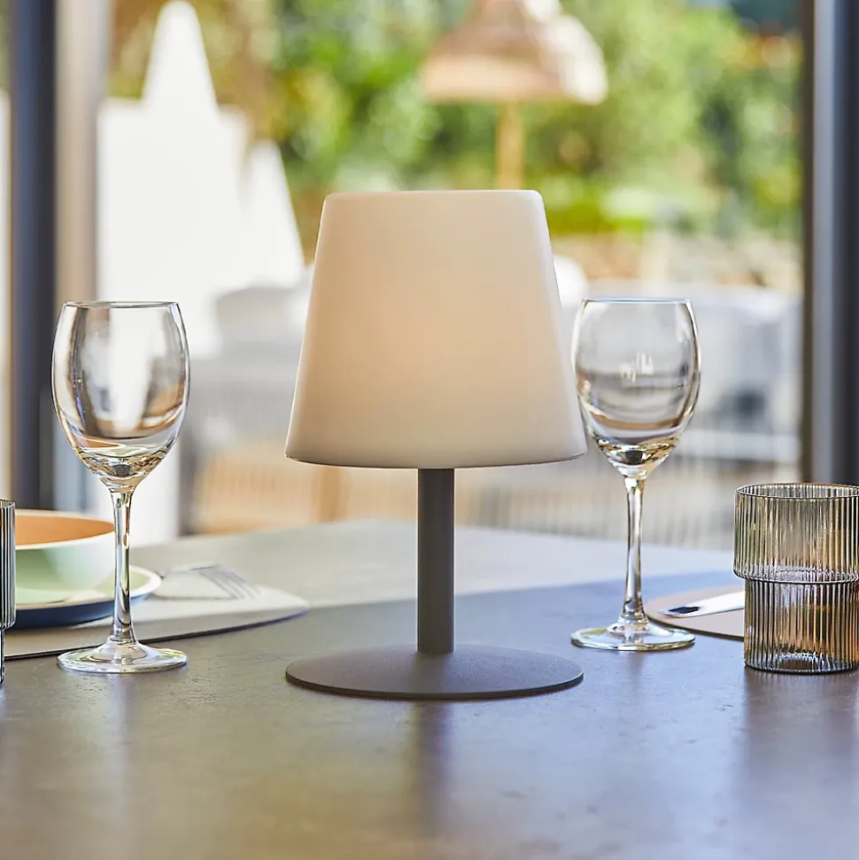 La lampe de table LED sans fil Standy Mini Rock se distingue par un design moderne avec un pied en acier gris brossé. Ce modèle autonome apporte une touche tendance et originale à votre décoration intérieure ou extérieure. Équipée d’une base LED blanc chaud et blanc froid à intensité variable, elle permet d’adapter l’éclairage avec un flux de plus de 100 lumens. Sa batterie rechargeable offre une autonomie de 8 heures après un temps de charge complet de 4 à 6 heures via le câble USB fourni. Son abat-jour en polyéthylène robuste de 16 cm de largeur associé à une hauteur totale de 25 cm assure une diffusion optimale. Certifiée IP44, elle résiste aux éclaboussures et aux rayons UV pour une utilisation sur terrasse ou en salon. Vous pouvez la disposer le long d’une pergola, d’une rambarde ou d’un mur pour structurer la lumière et mettre en valeur les volumes.