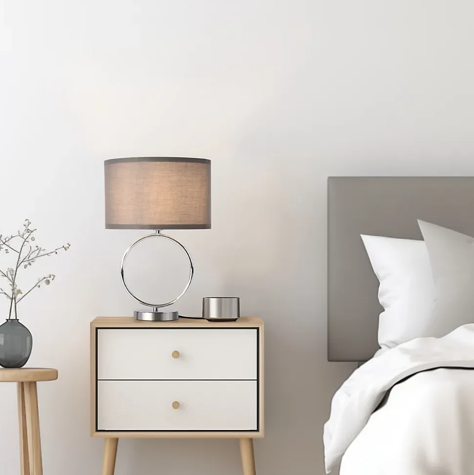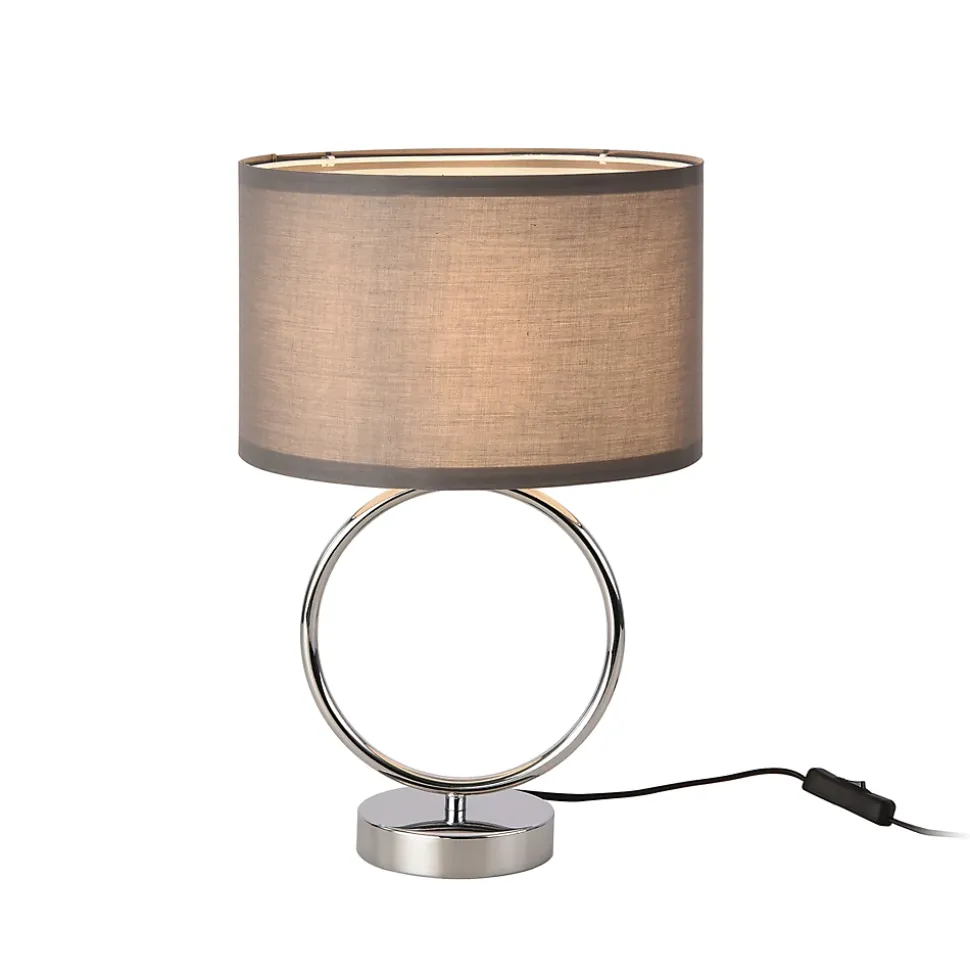Lampe de tableNotre lampe de bureau au style unique et intemporel complétera parfaitement le décor de votre salon, chambre ou bureau. Elle apportera une ambiance chaleureuse à votre intérieur et s’adaptera facilement à tous les styles d’intérieur.Description :- lampe de table moderne et sophistiqué- idéale pour toutes pièces de la maison- design unique et attrayant- avec une douille de lampeCaractéristiques techniques :- Douille : 1 x E14, max. 40W (livraison sans ampoule)- Alimentation : 230V, 50Hz- interrupteur à cordonMatière :- structure : métal- abat-jour : tissu (100 % polyester)Dimensions :- hauteur : 42 cm- abat-jour (diamètre x hauteur) : 28 x 18 cm- pied (diamètre x hauteur) : 12 x 2,5 cm- longueur du câble : 150 cmCouleur :- structure : chrome- abat-jour : grisContenu de la livraison :1 x lampe de table (l’ampoule ne fait pas partie de l’offre)Produit de la marque :lux.pro