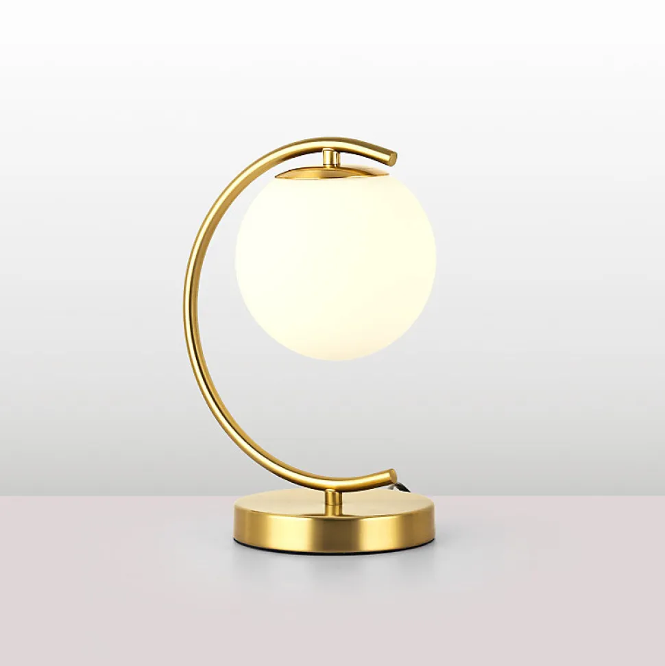 Lampe de Table « YLSA » – Globe en Cristal Opalin – E27Design sophistiqué et élégant pour votre décorationLa lampe de table « YLSA » allie un design moderne et raffiné avec des matériaux de haute qualité. Sa structure en aluminium courbé avec finition doré mat et son globe en cristal opalin apportent une touche de distinction à n’importe quel espace, s’intégrant parfaitement dans des environnements modernes, classiques ou rétro.Caractéristiques principales: Design sophistiqué et polyvalent: L’association de la structure courbée en doré mat avec le cristal opalin crée une pièce unique, idéale pour sublimer la décoration de votre maison. Éclairage chaud et uniforme: Compatible avec une ampoule LED sphérique E27 G45 (non incluse), d’une puissance maximale de 40W. Son diffuseur en cristal opalin offre une lumière douce et enveloppante, parfaite pour créer des ambiances chaleureuses. Facile à installer et à utiliser: Équipée d’un câble de 1320 mm de longueur, d’un interrupteur et d’une prise pour plus de confort et de simplicité. Applications polyvalentes: Idéale pour les bureaux, les tables de chevet ou les tables d’appoint dans les salons et les chambres. Elle n’éclaire pas seulement votre espace, mais apporte également une touche de style et de sophistication.La lampe de table « YLSA » est l’option parfaite pour ceux qui recherchent un design, une fonctionnalité et une ambiance chaleureuse dans leur maison.