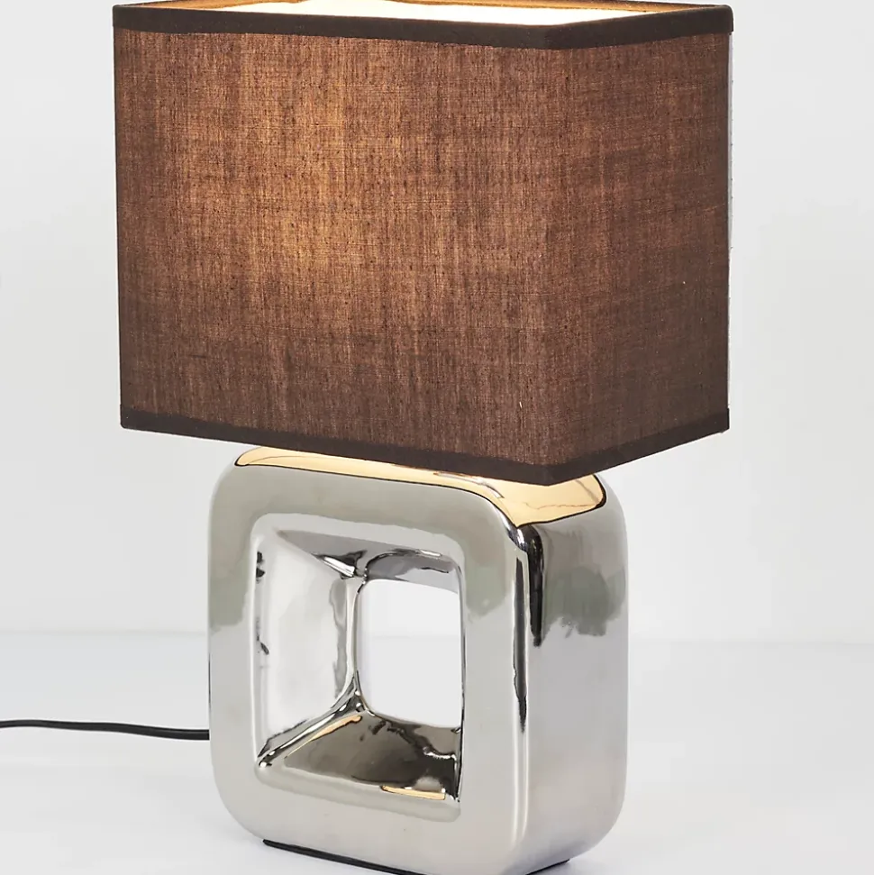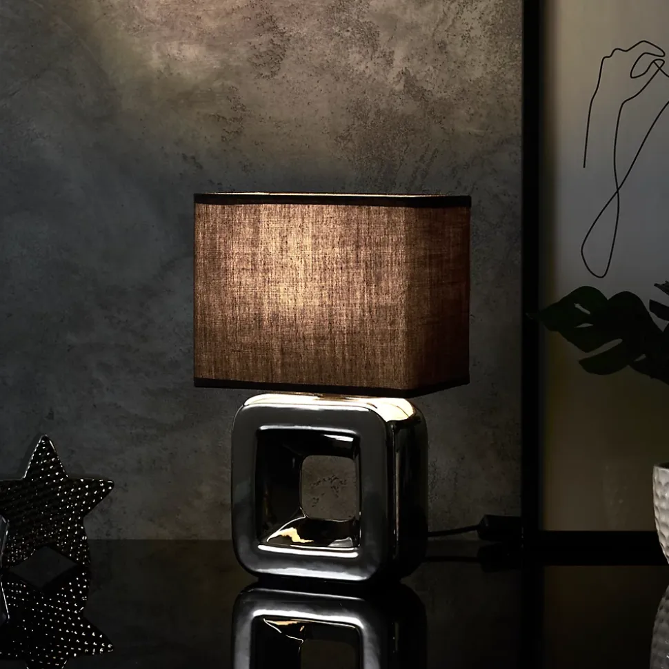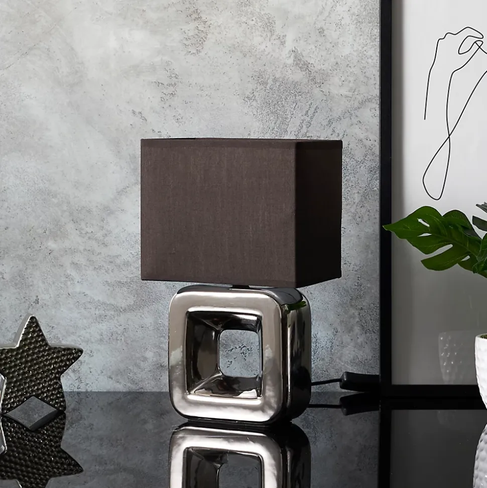 Lampe en céramique chroméeCette lampe de la marque HOME DECO FACTORY se distingue par son design moderne et élégant. Sa base en céramique chromée reflète la lumière de manière subtile, tandis que l’abat-jour de couleur sombre contribue à créer une ambiance douce et chaleureuse dans votre intérieur.Caractéristiques techniques- Matériau : Céramique chromée- Couleurs : Argent et Blanc- Dimensions : H32,5 x L20 x P12,5 cmAvantagesCette lampe apporte une touche d’élégance à votre décoration tout en offrant un éclairage agréable. Son design unique permet de l’intégrer facilement dans divers styles d’intérieur.