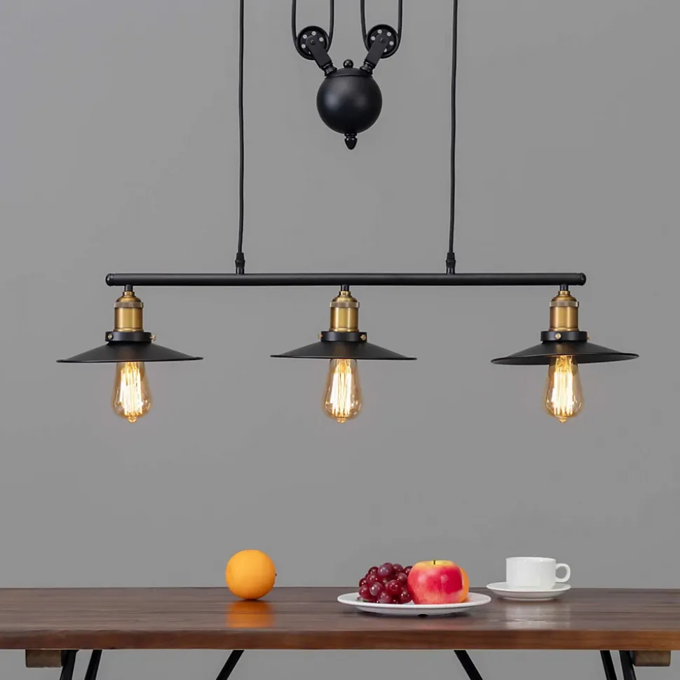 Suspension design multiple Piattino noire et bronze. Ce luminaire tendance et industriel est composé d’un socle et de trois abat-jours en métal noir. L’éclairage se fait par 3 ampoules de culot E27 que vous pourrez choisir selon vos besoins. Idéale dans une salle à manger, cette jolie suspension vous procurera un éclairage homogène et ajoutera une touche de décoration vintage à votre intérieur. Enfin, réglez la hauteur comme bon vous semble grâce au système de poulie, simple et efficace.La suspension triple Piattino est élue Best Seller !) Assemblage à faire par vos soins (