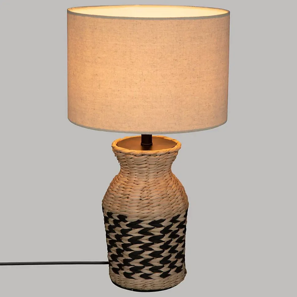 Craquez pour la lampe « Jacinthe » Atmosphera ! Très artisanale, elle vous séduira si vous affectionnez un style ethnique chic dans votre déco.Des matières naturellesLa lampe « Jacinthe » est un luminaire filaire composé d’un pied en jacinthe d’eau tressée, surmonté d’un abat-jour réalisé dans un mélange de coton et de jute végétale. Lestée par du sable, sa base est très stable.Une décoration de caractèreFacile à coordonner à du bois et du rotin, votre lampe se fondra naturellement dans un univers déco aux accents exotiques. De format standard, elle déposera une touche de préciosité dans votre intérieur.Placez votre lampe « Jacinthe » sur une console en bois de manguier Atmosphera et profitez d’une ambiance propice à l’évasion !Le petit plus décoChoisissez une ampoule d’un blanc chaud afin de bénéficier d’une lumière agréable.