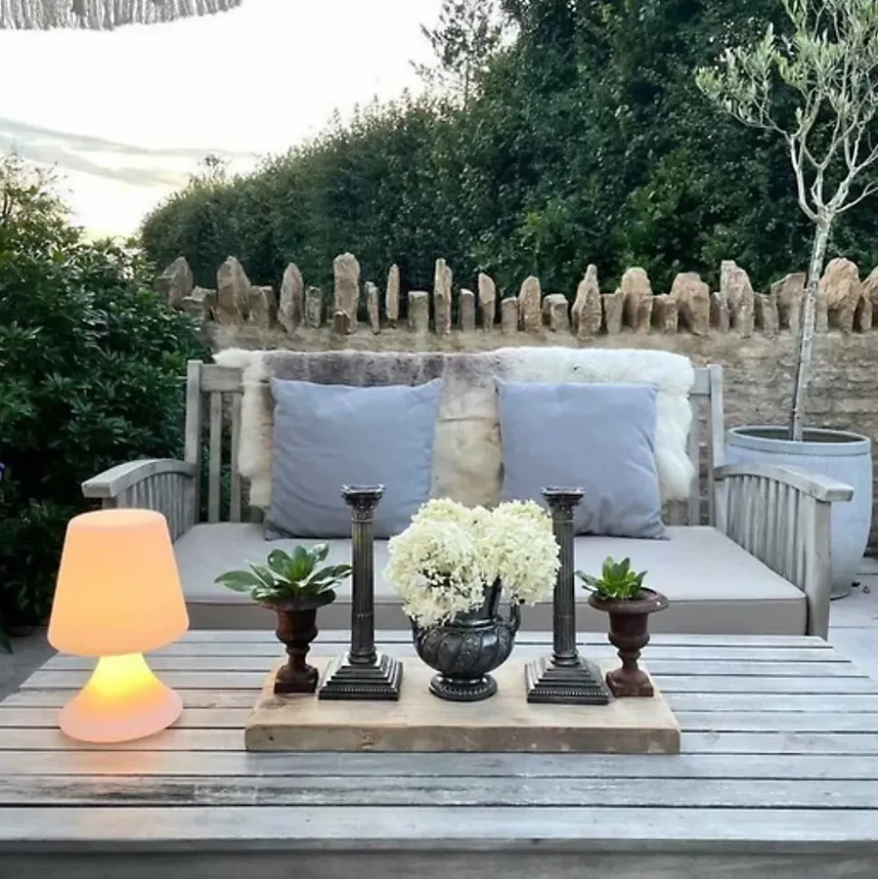 Notre lampe Maria est facile à emporter partout avec vous : au jardin, en promenade ou en pique-nique au parc. Rechargeable, elle diffuse une douce lumière blanche chaude.-Lampe fonctionnelle et esthétique à la douce lumière blanche chaude.-Son matériau est traité anti-UV, ce qui empêche la décoloration de la LED due à la lumière du soleil. Elle résiste à des températures allant de -14 °C à +35 °C.-Télécommande permettant de régler la luminosité et d’allumer/éteindre la lampe (en option).-Sans fil, elle est facile à transporter et offre jusqu’à 12 heures d’autonomie après une charge complète (selon la luminosité).-Certifiée IP44, elle est résistante aux insectes et aux particules solides jusqu’à 1 mm, ainsi qu’aux fortes projections d’eau de toutes parts. Elle est donc idéale pour une utilisation en extérieur et dans les pièces humides, comme une salle de bain. Cependant, elle n’est pas conçue pour être utilisée dans une baignoire ou un bain d’oiseaux.Vous pouvez également l’utiliser comme éclairage intérieur ou pour créer une ambiance chaleureuse à table.Spécifications :-Réf. : 21005-Hauteur : 26 cm-Indice de protection : IP44 (résistant à la pluie fine)-Température de couleur : 2800-3200 K-Diamètre : 16 cm-Source lumineuse : LED-Puissance : 1 W / 5 V-Télécommande : Oui (vendue séparément, ne fonctionne pas avec les bougies noires)-Temps de charge : 8 h-Alimentation : Secteur
