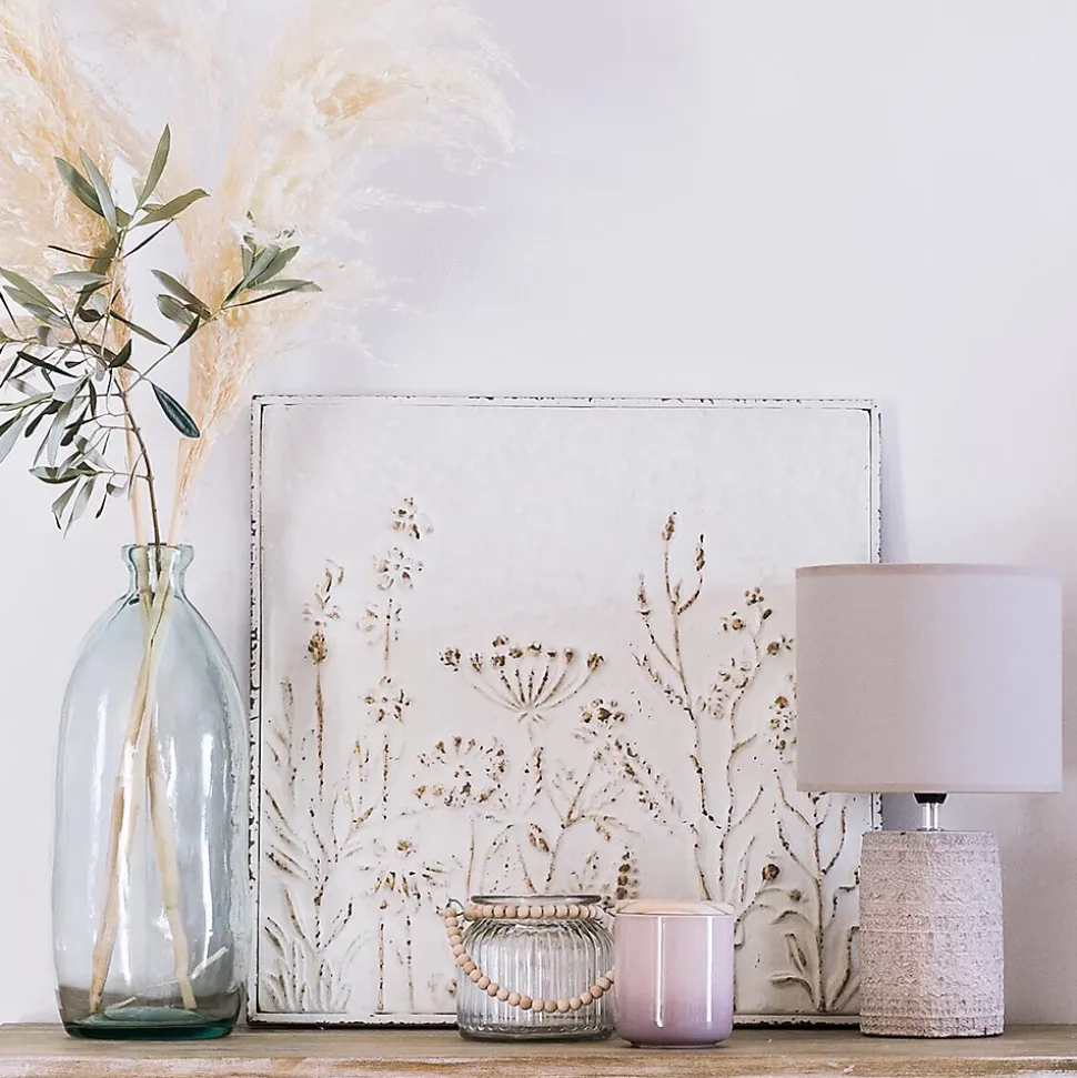 Vous souhaitez apporter une touche de charme supplémentaire à votre chambre à coucher ? La lampe « Mélo » Atmosphera devrait vous plaire… Le chic d’une finition en grèsToute l’élégance de la lampe « Mélo » lui vient de son pied cylindrique original en céramique. Son socle texturé présente des motifs qui rappellent une frise graphique, où la matière brute contraste avec un effet dentelle. Un chevet au classicisme revisité L’abat-jour cylindrique au design classique de la lampe de chevet « Mélo » est réalisé dans un mélange de coton et de PVC, tendu sur une armature en fer pour une meilleure robustesse. Il permet d’adoucir l’éclat de l’ampoule pour vous faire profiter d’une ambiance tamisée romantique et apaisante. Pourquoi ne pas associer la lampe « Mélo » avec une table de chevet industrielle Atmosphera pour renforcer son côté brut ? Le petit plus déco Ajoutez une ampoule à la luminosité chaude pour renforcer l’atmosphère cosy créée par cette lampe de chevet !