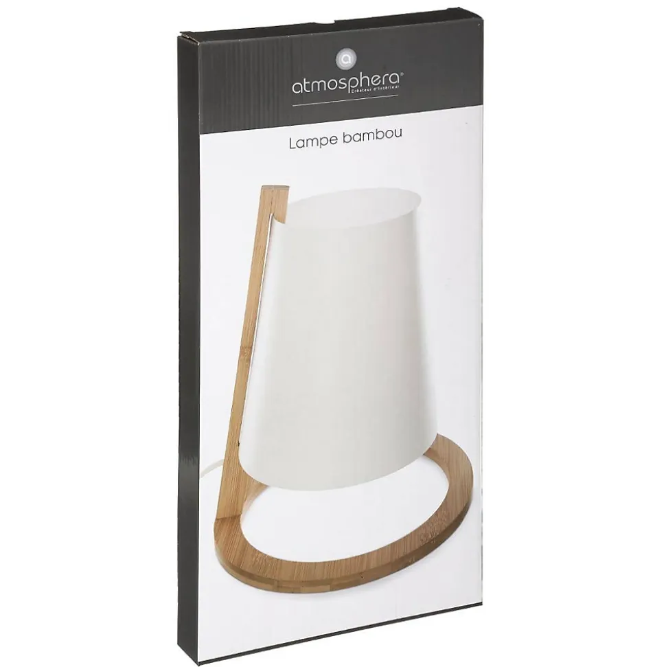 Vous recherchez une lampe tendance au design singulier ? Vous ne résisterez pas aux lignes originales de la lampe « Pita » Atmosphera.Un style unique en son genreLe support circulaire de la lampe de table « Pita » lui confère élégance et originalité à la fois. Au-delà de son effet naturel dans l’air du temps, le bambou apportera également de la douceur dans votre foyer.Une ambiance cosy pour toutes vos piècesPour lire, travailler ou créer l’ambiance lors de votre séance de yoga, cette lampe se placera dans un coin de votre salon ou dans votre chambre. Son éclairage non directionnel et naturel convient aux ambiances feutrées et propices à la détente. Accordez la lampe « Pita » avec une table d’appoint Atmosphera dans un style contemporain épuré.Le petit plus déco Osez un papier peint orné d’imprimés japonisants en fond pour mettre en valeur votre lampe.