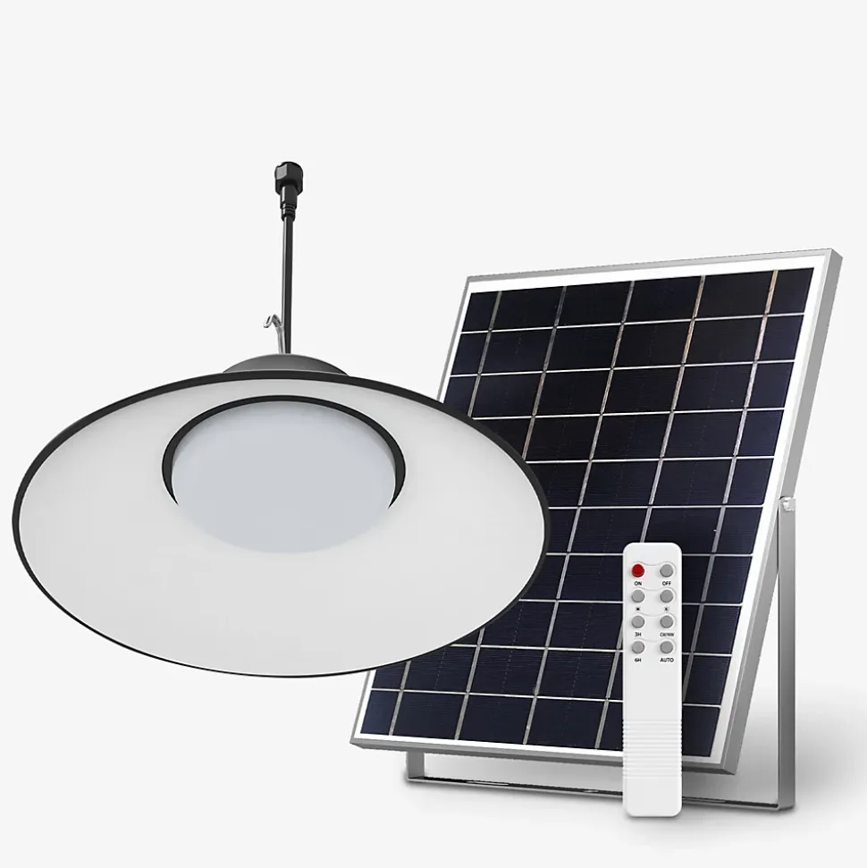 Offrez à vos espaces extérieurs un éclairage puissant et élégant grâce à cette cloche solaire disponible en 500 et 1650 lumens. Conçue pour s’adapter à tous les besoins, elle diffuse une lumière réglable en température de couleur (3000K, 4000K et 6000K), permettant de créer une atmosphère chaleureuse, naturelle ou froide selon l’ambiance souhaitée.Grâce à son indice de protection IP65, cette lampe LED solaire résiste aux intempéries et assure une durabilité optimale en extérieur. Sa construction robuste en Fer et PC garantit une excellente tenue dans le temps tout en conservant une légèreté facilitant l’installation.Polyvalente et innovante, cette cloche solaire fonctionne également en mode diurne, ce qui permet de l’activer en journée si nécessaire. Dotée d’un câble de 5 mètres, elle offre une grande flexibilité d’installation, permettant de placer le panneau solaire à l’endroit le plus exposé au soleil tout en ajustant l’emplacement de la lampe selon vos besoins.Sa télécommande de contrôle permet d’ajuster facilement l’intensité lumineuse et de sélectionner la température de couleur, offrant ainsi une expérience d’éclairage sur-mesure. Avec une autonomie pouvant aller jusqu’à 12 heures, elle assure une utilisation longue durée sans nécessiter de branchement électrique.