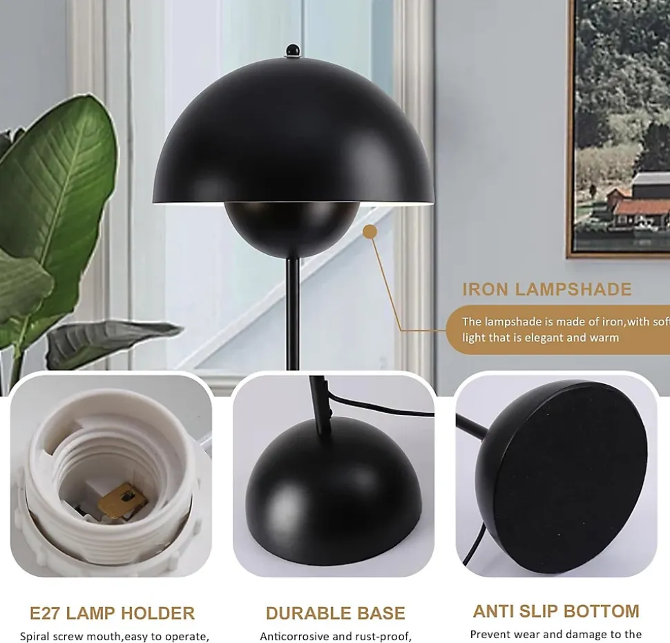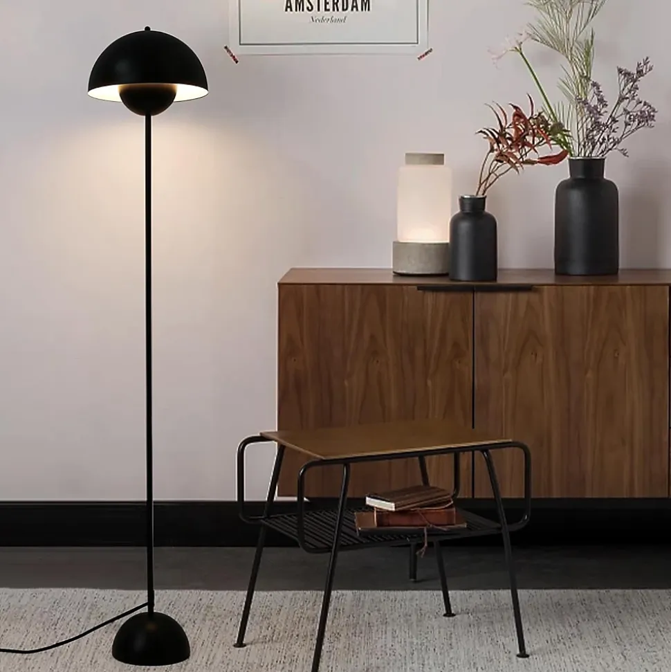 Lampe sur Pied au Design Nordique Classique Noir avec Abat-jour et Base Parabolique Douille E27 pour Salon Salle à Manger Chambre