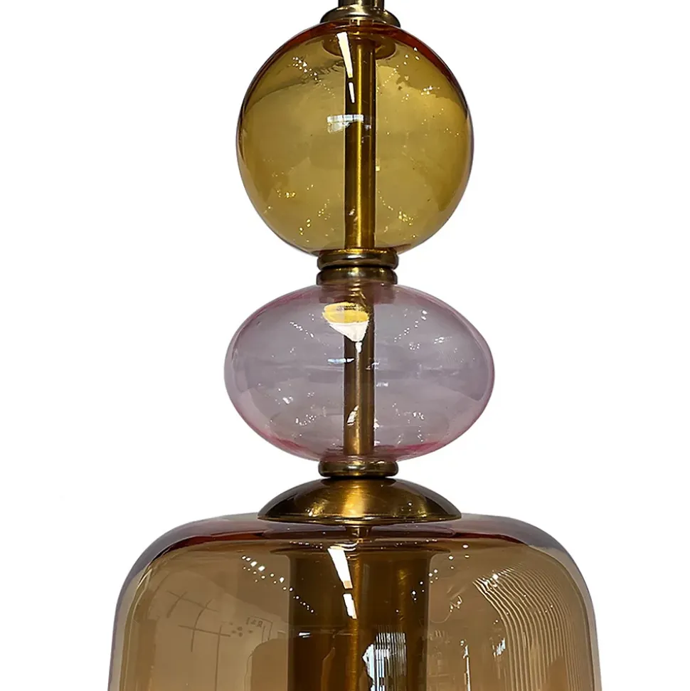 La suspension Tropea associe le verre et le métal dans une élégante finition or vieilli. Ses éléments en verre se déclinent en trois couleurs harmonieuses : ambre et rose poudré. Grâce à cette palette de couleurs variée, la lampe devient non seulement une source de lumière fonctionnelle, mais aussi un élément de décoration unique pour tout intérieur. Elle s’accorde parfaitement avec différents styles d’intérieur, tels que bohème, rétro ou vintage. Grâce à sa hauteur impressionnante, Tropea peut devenir la pièce maîtresse d’une salle à manger, y ajoutant un charme unique. Elle trouve également parfaitement sa place comme élément design dans une chambre.