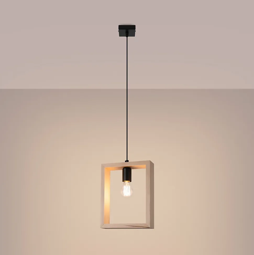 Cette lampe suspendue élégante allie simplicité et modernité. Elle se compose d’un cadre carré en bois et d’une seule ampoule suspendue au centre. Elle s’intègre parfaitement dans les intérieurs de style scandinave ou comme accent dans les espaces plus éclectiques. La simplicité du design permet d’utiliser cette lampe dans différentes pièces de la maison.