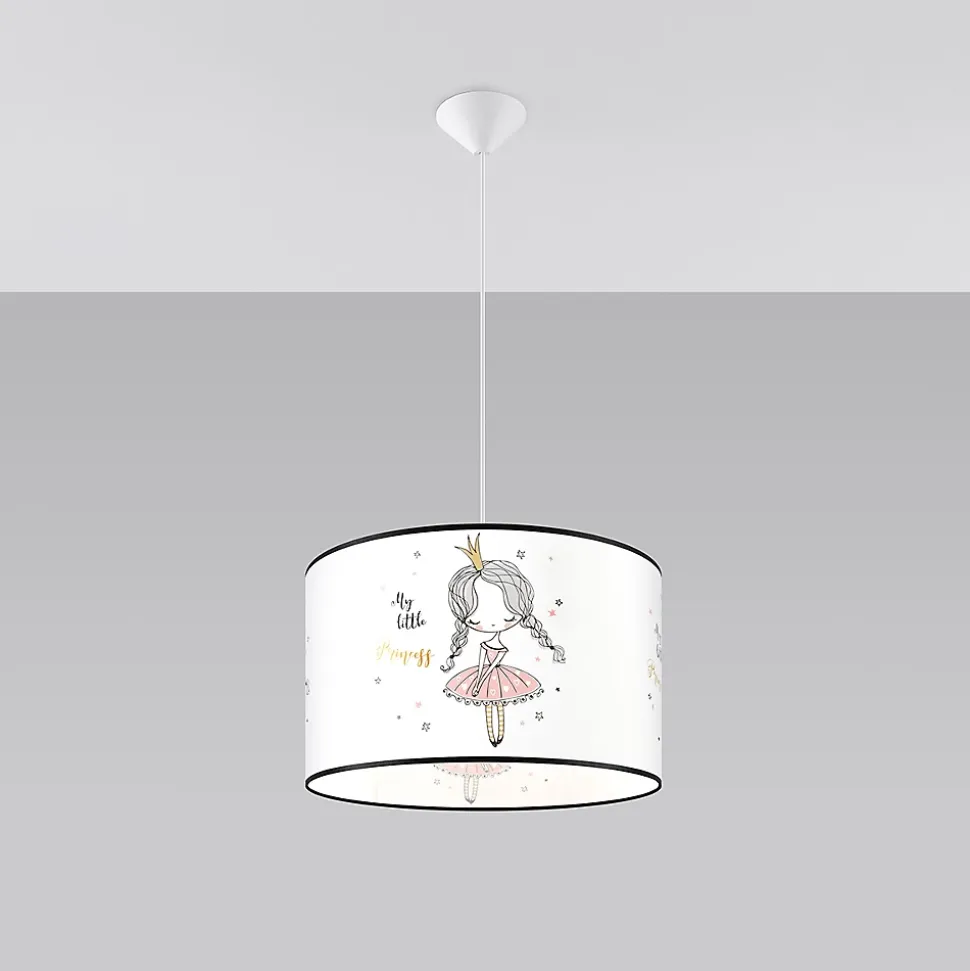 - Motif délicat d’une princesse en robe rose et couronne sur l’abat-jour.