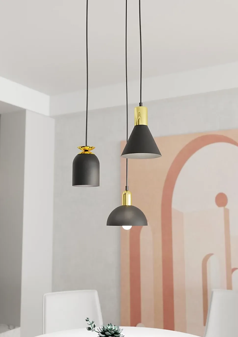 La suspension Fox est un accent loft exceptionnel, qui se distingue par ses trois abat-jour métalliques aux formes variées. Cette diversité de formes lui confère un caractère dynamique, tandis que les ornements dorés apportent un contraste élégant à son design brut. Parfaite pour les salons modernes, les salles à manger ou les espaces commerciaux, la lampe Fox marie le style industriel à une touche de raffinement, créant une ambiance unique dans chaque intérieur.