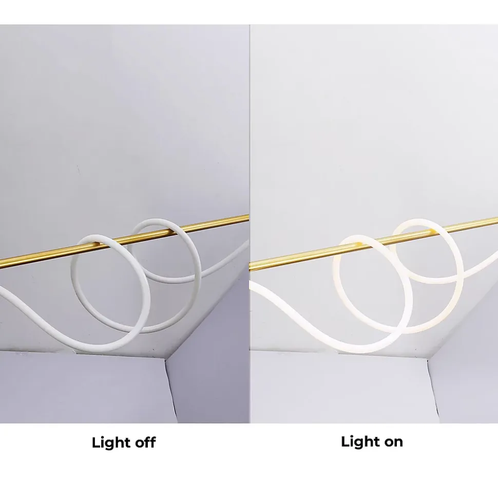 Suspension Moderne Néon Ondulant SALSA – 360 – 45W – 4000KLa suspension SALSA offre un design avant-gardiste avec un tuyau néon ondulé qui permet une disposition personnalisée. Cette lampe diffuse une lumière douce et homogène dans une tonalité blanche neutre (4000K), idéale pour créer une atmosphère moderne et accueillante dans n’importe quel espace.Caractéristiques Principales:Design Moderne: Suspension linéaire avec tuyau néon ondulé, ajustable et personnalisable.clairage Doux: 45W de puissance, émettant une lumière blanche neutre de 4000K.Répartition Uniforme de la Lumière: Haute densité de puces LED garantissant un éclairage homogène, parfait pour les grands espaces.Flexibilité du Design: Le tuyau néon permet de modifier la disposition pour créer un design unique et personnalisé.Couleurs Disponibles: Noir et doré.Installation Facile: Tous les accessoires nécessaires au montage, avec câbles en acier plastifié et rosaces pour fixation au plafond.Hauteur Réglable: S’adapte aux besoins spécifiques de l’espace.Dimensions: 1500x1400x150mm.Spécifications Techniques:Tension Nominale: 220-240V ACPuissance: 45WAngle d’Ouverture: 360Ton de Lumière: Blanc Neutre (4000K)Structure: Disponible en noir ou doréIndice de Protection: IP20 (usage intérieur)Applications:Idéale pour éclairer et décorer les salons, salles à manger, espaces de travail et tout environnement recherchant une touche moderne et accueillante.