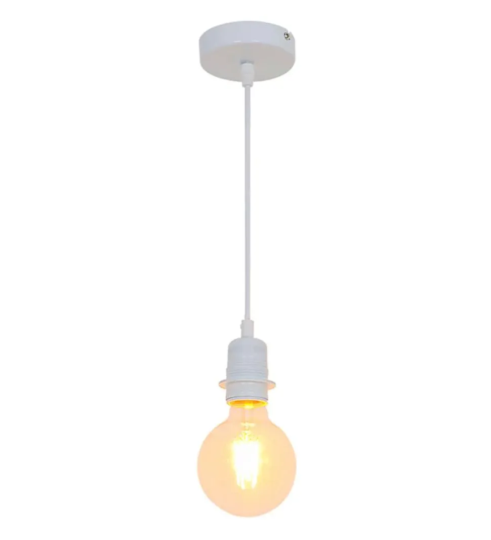 Lampe suspension en métal blanc E27 60. WAmpoule non fournieDécouvrez cette suspension au look contemporain qui apportera une touche moderne à votre intérieur.DESCRIPTIF :- Type de produit : Suspension- Matériau : Métal- Finition : blanc- Usage : IntérieurCARACTERISTIQUES TECHNIQUES : – Dimensions : H110 cm – L10 cm- Compatible Ampoules : LED, Halogène, basse consommation- Culot : E27- Nombre d’ampoule : 1 (non fournie)- Puissance : 60 Watts max. – Longueur câble : 100 cm- réglable en hauteur : OuiCE QUE NOUS AIMONS : Cette lampe suspension au design élégant apportera une touche contemporaine à votre intérieur.La hauteur de la suspension peut être réglée avant l’installation.Cette lampe décorative sera du plus bel effet placée au-dessus de votre table à manger ou encore au dessus de votre bureau.Pour des économies d’énergie, privilégiez l’utilisation d’ampoule LED.