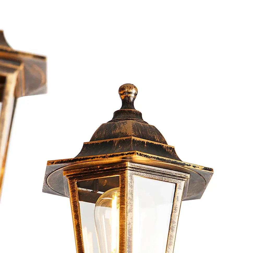La lanterne d’extérieur antique New Haven vous fera revivre la nostalgie ! Une lanterne d’extérieur comme il se doit. Elle est fabriquée en plastique avec du verre et est finie en or. La lampe a un diamètre de 53 cm et une hauteur de 216,5 cm. Vous pouvez compléter New Haven en ajoutant trois ampoules, chacune avec un culot E27 (15W maximum). Assurez-vous de les commander séparément, car elles ne sont pas incluses. Son indice de protection IP44 élevé signifie que la lanterne est résistante aux éclaboussures et convient donc à une utilisation dans le jardin avant ou le long d’un chemin. Créez un espace extérieur sécurisé avec la lanterne New Haven.