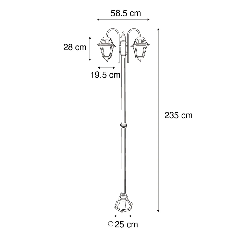 Apportez une touche de nostalgie à votre espace extérieur avec la lanterne classique noire Berta. D’une hauteur impressionnante de 235 cm, cette lanterne sur pied redonne à votre jardin ou à votre allée le charme d’antan. Avec son design élégant et ses deux lumières d’ambiance, Berta crée une atmosphère chaleureuse et accueillante dès la tombée de la nuit. Sa conception résistante aux intempéries avec indice de protection IP44 garantit que cette lanterne brillera toujours, quelles que soient les conditions météorologiques. Idéale pour ceux qui souhaitent donner à leur espace extérieur un caractère unique. Laissez votre jardin briller avec Berta, la combinaison parfaite du style et de la fonctionnalité. N’attendez plus et illuminez votre espace extérieur dès aujourd’hui !