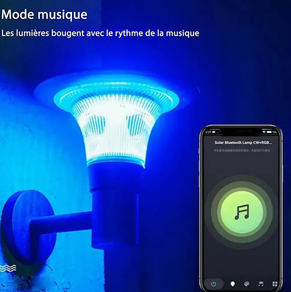 - 【Fonctionnement】 Cette lanterne est dotée d’un contrôle intelligent via l’application Smart Life/Tuya. Créez une ambiance cosy, festive ou paisible avec les différentes couleurs d’éclairage que propose cette Applique Solaire. Pour ce faire, connectez votre Applique Solaire à l’application Smart Life/Tuya afin de contrôler votre éclairage. De nombreuses fonctionnalités sont disponibles : Power ON/OFF, choix de la couleur et de sa température grâce à sa fonction RGB , Création de scènes personnalisées, réglage de la luminosité, fonction de rappel de batterie faible, allumage et extinction temporisés de la lumière, rythme musical…