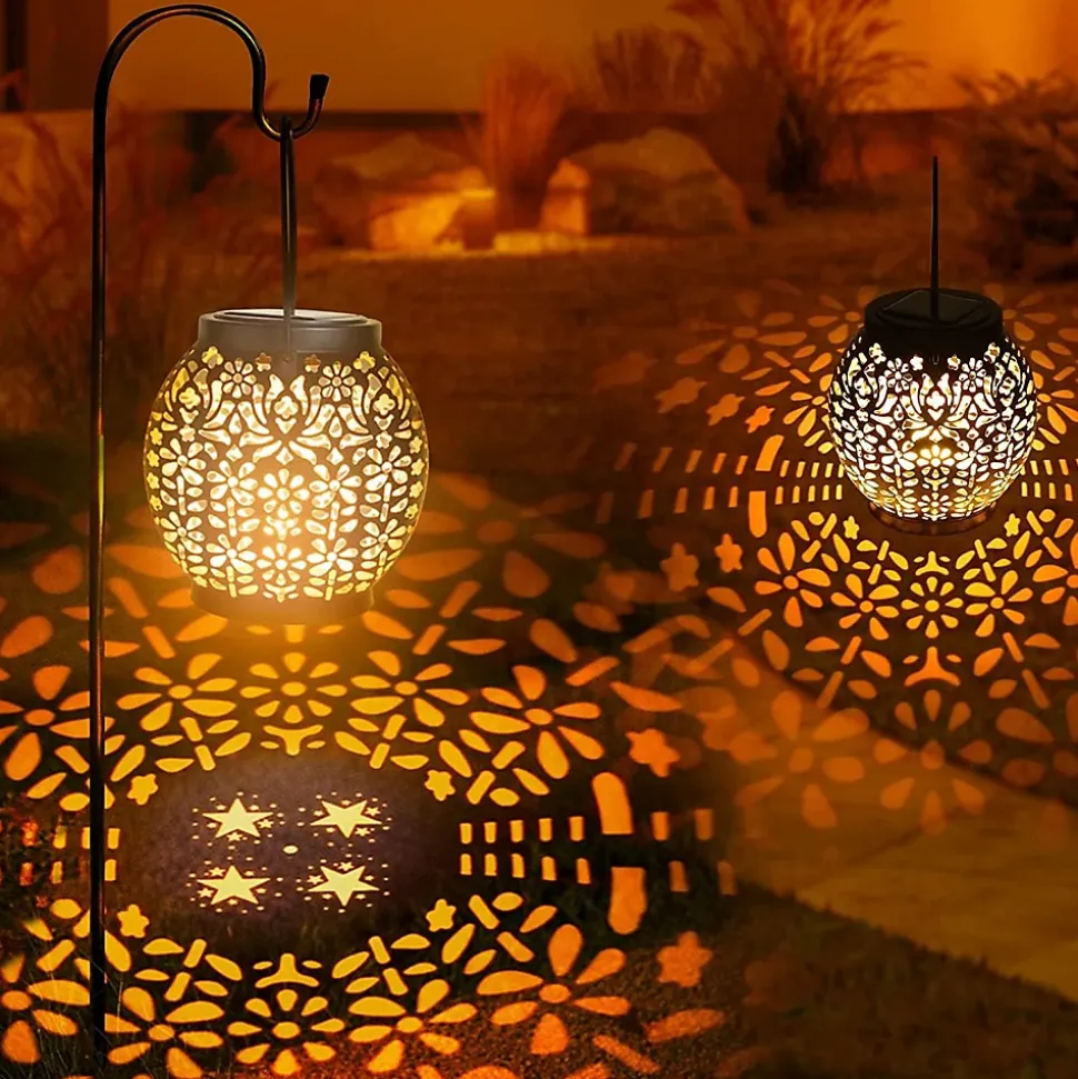 Lanterne Solaire Étoile Unique Notre lanterne solaire suspendue est conçue avec un motif évidé rétro et il y a un motif en étoile au bas de la lanterne (les autres vendeurs ont un fond vierge). De beaux effets visuels créent une atmosphère romantique et chaleureuse, Parfait pour jardin, patio, cour, chemin, porche, pelouse et plus encore. Un cadeau idéal pour amoureux, amis et familles.