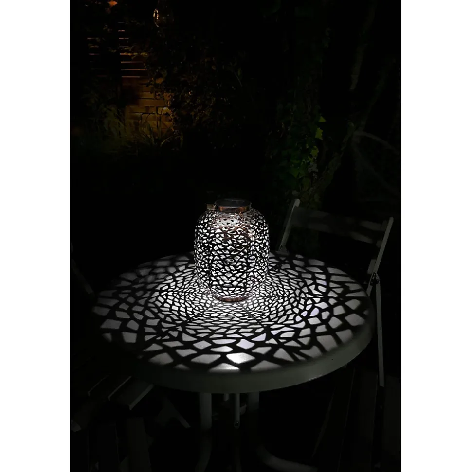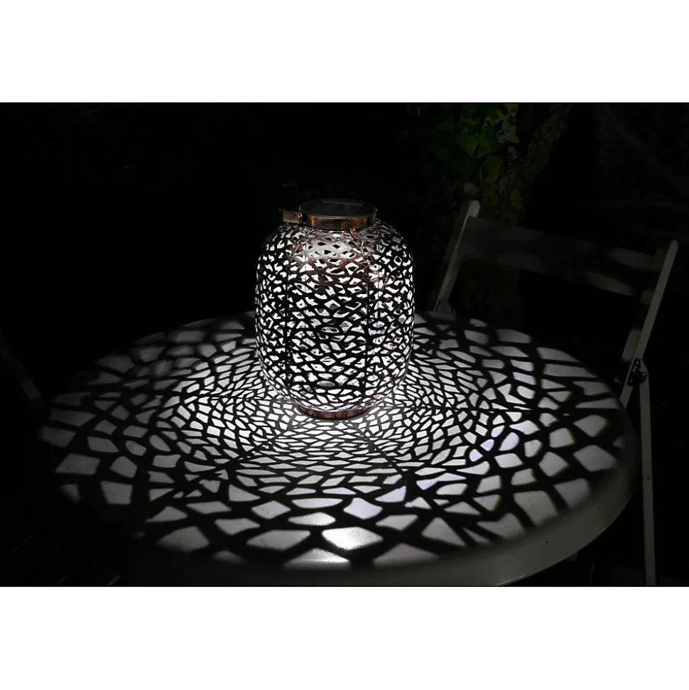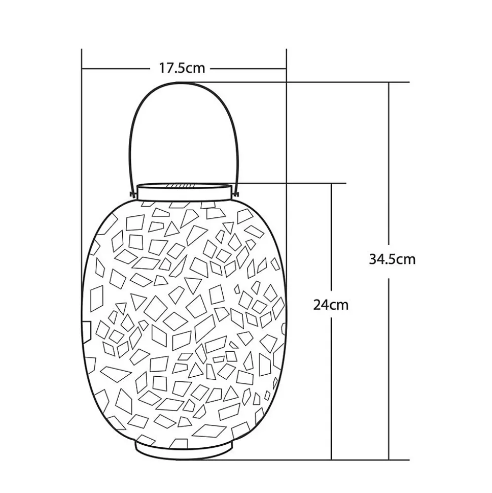 Lanterne métal à énergie solaire – design rétroMatière : métal Nombre de Lumens : 10Durée maximum d’éclairage : 8 heuresInterrupteur on/offLED : 1 LED blancheBatteries rechargeables : 1 x 400mAh Ni-Mh AADimensions produits : (voir le schéma technique parmi les images)H : 345 / 240 mm – Ø 175 mm