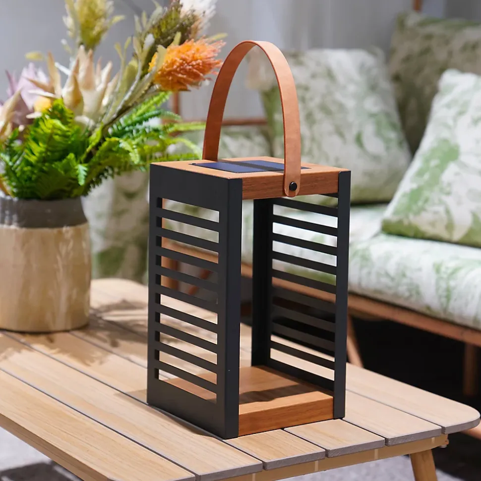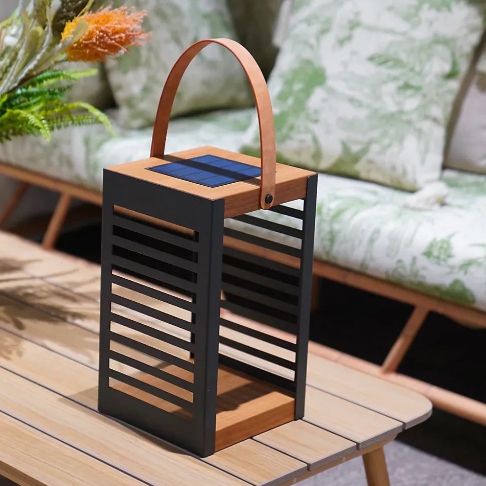 La lanterne solaire LED Ferian Small en métal avec finition effet bois est équipée de la base rechargeable Sunny Square amovible. Elle propose trois modes d’éclairage blanc chaud (90, 180 et 300 lumens) pour une autonomie atteignant 16 heures en mode faible. La recharge complète nécessite 8 heures d’ensoleillement ou 5 heures par câble magnétique. Ce modèle dispose d’un capteur Daylight pour une activation intelligente et d’une télécommande pour le contrôle à distance. D’une hauteur de 35 cm pour 20 cm de largeur, elle est certifiée IP65 contre les intempéries et les rayons UV. Sa structure robuste garantit une excellente durée de vie technique au bord d’une piscine ou sur une terrasse. L’entretien reste simple : un chiffon doux suffit pour conserver un rendu soigné au fil des saisons.