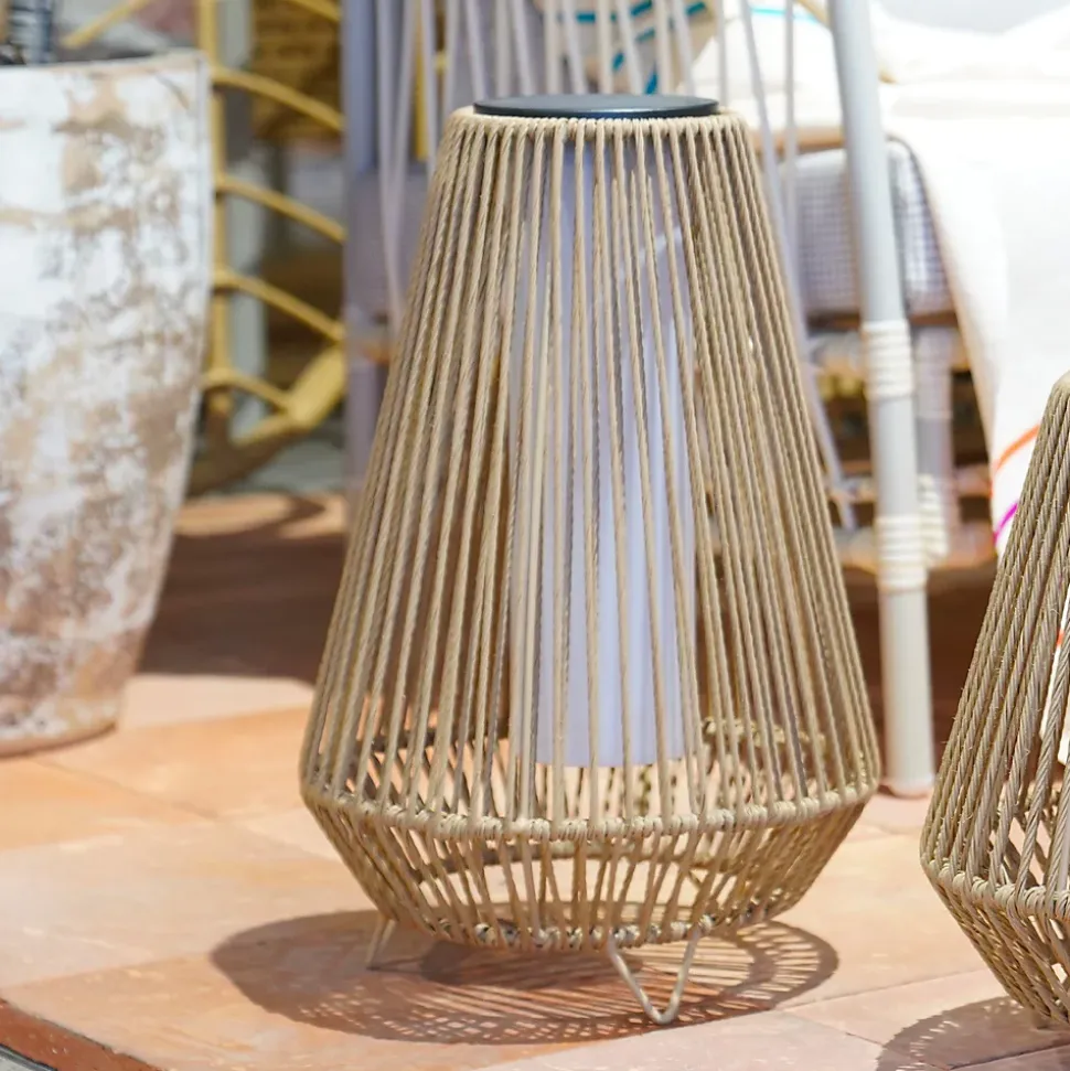 La lanterne solaire LED Salomea Tall en rotin est équipée de la base rechargeable Sunny Round amovible. Elle propose trois modes d’éclairage blanc chaud (60, 120 et 300 lumens) pour une autonomie atteignant 16 heures en mode faible. La recharge complète nécessite 8 heures d’ensoleillement ou 5 heures par câble fourni. Ce modèle dispose d’un capteur Daylight pour une activation intelligente et d’une télécommande pour le contrôle à distance. D’une dimension de 30x30x47 cm, elle est certifiée IP65 pour résister aux intempéries et aux rayons UV. Sa structure robuste garantit une excellente durée de vie technique pour structurer vos espaces extérieurs avec élégance. Parfaite pour les repas en plein air, les apéritifs ou les soirées d’été, elle crée immédiatement une ambiance douce et accueillante. Facile à intégrer à votre aménagement, elle apporte un point lumineux décoratif sans alourdir l’espace.