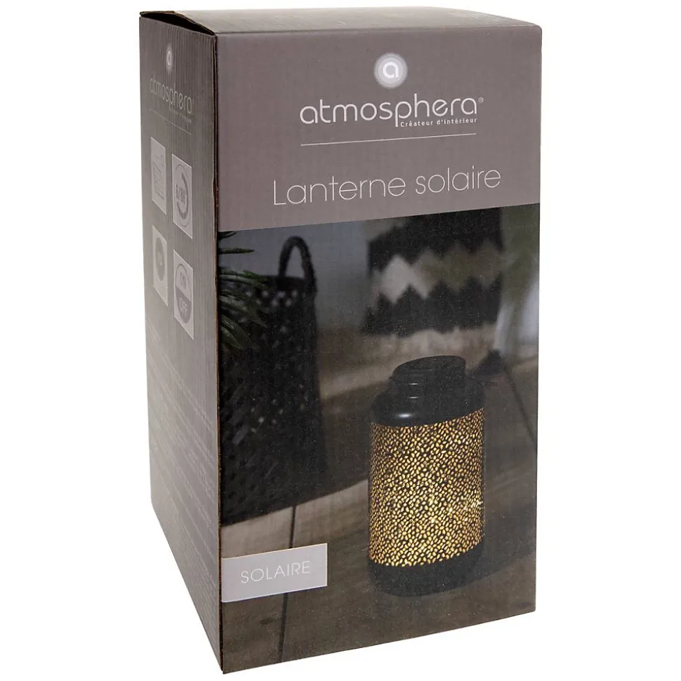 Envie de douceur, de romantisme et d’ambiance feutrée ? Craquez pour cette lanterne solaire Atmosphera. Utilisable en intérieur et en extérieur Cette lanterne en métal plaît avant tout par sa praticité et sa polyvalence. Sur la terrasse ou le balcon, elle illuminera vos soirées. Grâce à sa anse, vous pourrez la suspendre à un arbre ou à une pergola. Si vous êtes plutôt d’humeur à rester à l’intérieur, elle trouvera aussi sa place sur une console. Rechargeable à l’énergie solaire, cette lanterne vous permet de profiter de sa lumière durant six à huit heures. Pour en faire un bel objet déco et attirer l’attention sur son motif ajouré, exposez-la sur une table d’appoint Atmosphera. Le petit plus déco Accrochez cette lanterne avec d’autres luminaires dans le même esprit pour passer des soirées féeriques en plein air.