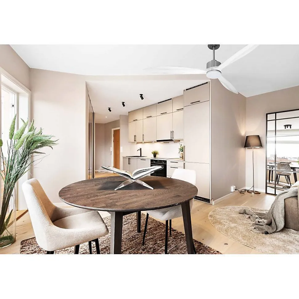 KLassFanVentilateur de plafond Latino III LTDécouvrez le Latino III LT de KLassFan, un ventilateur de plafond exceptionnel de 166 cm, idéal pour les grandes pièces. Équipé d’un moteur DC ultra silencieux et de pales en bois massif, ce modèle est conçu pour offrir un confort optimal toute l’année. Grâce à son thermostat intégré et sa connectivité WIFI, il s’adapte intelligemment aux variations de température. De plus, sa plaque LED dimmable apporte un éclairage ajustable selon vos préférences.Performance et efficacitéLe Latino III LT est un déstratificateur d’air performant, parfait pour des espaces de 90 à 150 m² en hiver et de 45 à 65 m² en été. Ses pales en bois massif, soigneusement poncées à la main, sont fabriquées en épicéa lamellé-collé, garantissant une stabilité face aux variations de température.Son moteur DC offre une consommation énergétique minimale, avec seulement 38 watts à pleine vitesse et 6 watts à la vitesse la plus basse, ce qui est inférieur à la consommation d’un chargeur de téléphone.Fonctionnalités avancéesLe Latino III LT intègre des fonctionnalités classiques telles qu’un minuteur de 30 minutes à 8 heures, une fonction vent naturel et un mode hiver accessible via la télécommande. Sa connectivité WIFI vous permet de contrôler le ventilateur et l’éclaira