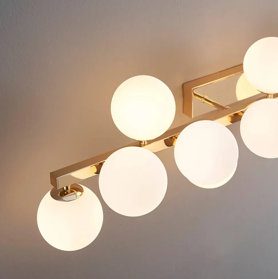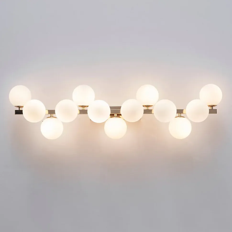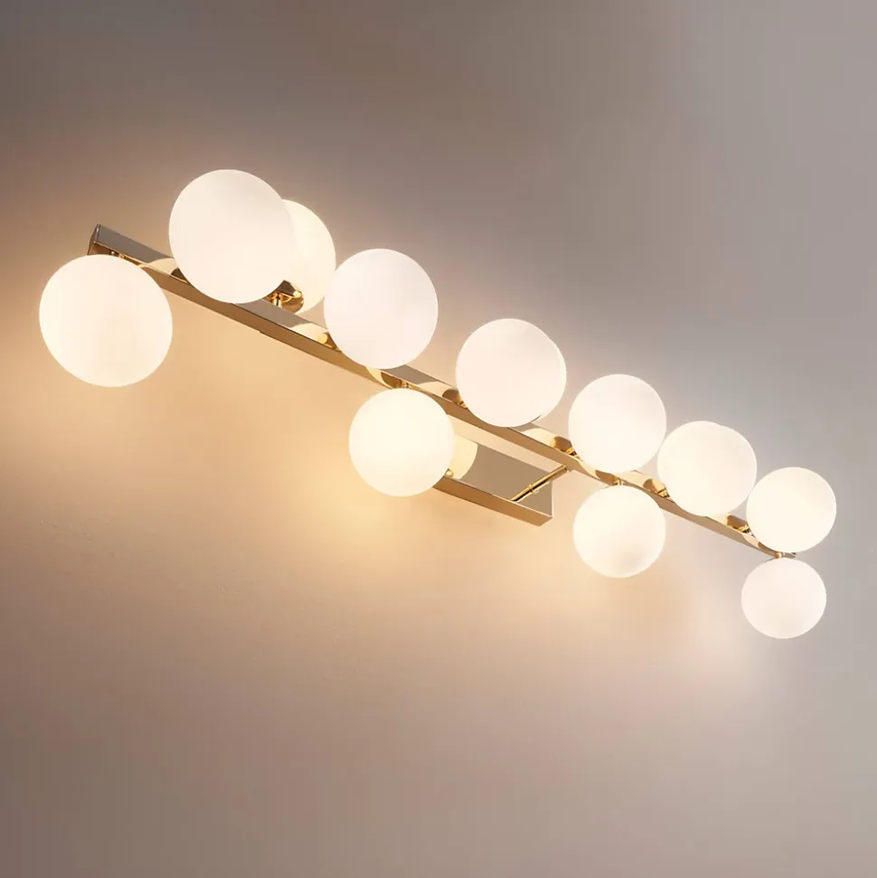 Ambrosia est une applique dorée impressionnante, ornée de 13 verres blancs qui apportent une touche de glamour à votre espace. Son design élégant et ses matériaux de qualité en font un luminaire attrayant pour éclairer et embellir votre intérieur. Polyvalente, elle peut être installée horizontalement ou verticalement selon vos préférences. À compléter avec 13 ampoules G9 (non fournies), privilégiez les LED blanc chaud pour un éclairage agréable. Découvrez toute la collection Ambrosia ici.) Assemblage simple requis (
