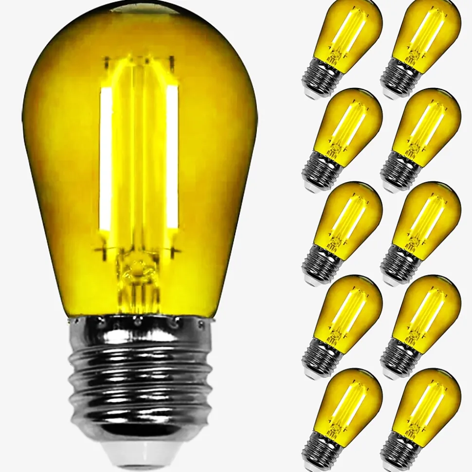 La touche vive et lumineuse indispensable à toute guirlandeAjoutez une touche de couleur à votre guirlande guinguette avec notre lot de 10 ampoules filament dimmable LED jaune de 5 cm de diamètre !Avec son culot E27, cette ampoule s’adaptera parfaitement à votre guirlande guinguette SkyLantern.En remplaçant une ampoule cassée ou en personnalisant votre guirlande avec les couleurs de votre choix, vous pourrez créer une ambiance unique pour vos soirées en plein air, votre mariage, vos fêtes de famille ou vos événements professionnels !N’attendez plus pour donner une touche de personnalité à votre guirlande guinguette, et optez pour notre lot de 10 ampoules filament dimmable LED jaune pour illuminer vos soirées en extérieur comme en intérieur !Caractéristiques Générales : Ampoule LED 2 W Diamètre : 5 cm Culot E27 Idéale pour nos guirlandes guinguette 10 ampoules