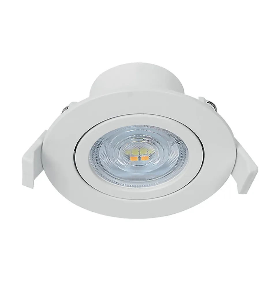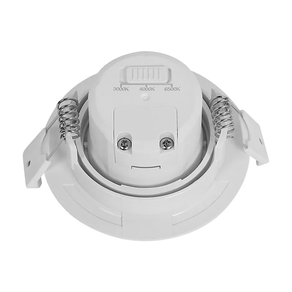Le spot LED encastrable 3en1 rond blanc 7W IP20 Dimmable à pour particularité son interrupteur de couleur au dos du mécanisme, qui permet de changer sa couleur de température kelvin (3000K, 4000K, 6500K). C’est pour cela qu’il convient parfaitement pour l’éclairage général de la maison (sauf salle de bain). Mais aussi les locaux commerciaux comme les restaurants, hôtels, boutiques, etc.. En effet, le spot LED encastrable 3en1 rond blanc 7W IP20 Dimmable, s’adapte à chaque pièces en fonction de l’ambiance désirée. Avec son driver intégré et ses ressorts de fixation, son installation est simple et rapide. Son efficacité énergétique et sa longue durée de vie permettent plus de 80% d’économie d’énergie, par rapport aux éclairages traditionnels incandescents ou halogènes. Son indice de rendu des couleurs (IRC) est élevé Ra⩾80. De plus il n’émet pas de radiation UV ni infrarouge. Ce spot est dimmable et peut donc être connecté à un interrupteur variateur d’intensité. Cela permet de varier l’intensité de l’éclairage pour le tamiser ou l’intensifier. Ce spot dispose d’un interrupteur de couleur Kelvin permettant de choisir entre 3 températures de couleurs. Le blanc chaud 3000K ambiance convivial et cosy, le blanc naturel 4000K qui se rapproche le plus à la lumière du jour et le blanc froid 6500K qui est énergisant et convient donc pour la concentration. Sa puissance de 7W avec 670lm équivaut à la puissance d’une ampoule incandescente de plus de 60W. Il est orientable et son angle de diffusion est de 38°, considéré comme moyen. Concernant sa matière, il est en polycarbonate (PC), qui est un thermoplastique connu pour ses propriétés mécaniques excellentes entre