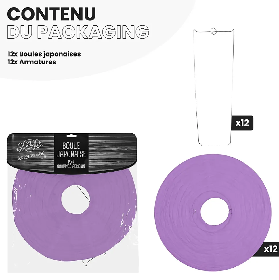 Lot de 12 lanterne papier de 40cm : Une décoration poétique pour tous vos évènementsFini de chercher d’autres idées pour embellir votre lieu de fête, les lanternes chinoises en papier de soie de SkyLantern.fr, vont vous permettre de créer un cadre poétique et authentique en quelques minutes. Epatez vos invités en utilisant votre sens du détail, puis composez en suivant vos idées. Votre lot de 12 boules papier aubergine de 40 cm devrait vous surprendre grâce à l’éclat de ses teintes sans oublier sa jolie forme qui s’intègre dans tout lieu festif.Lanterne japonaise pour déco mariage aubergine 40 cm : comment l’utiliser ?Ce type de boule chinoise est pratique pour les mariages, une Bar Mitzvah, une decoration anniversaire. Nos boules papier sont simples à déplier, il ne vous faudra pas longtemps pour décorer votre salle de couleur aubergine. Le montage ne réclame pas d’outil compliqué. Pour un meilleur rendu, vous pouvez suspendre la suspension luminaire avec du fil de pêche ou de la cordelette. N’hésitez pas à faire passer un filin parcourant les hauteurs. Ces articles se marient bien avec les autres produits SkyLantern, les lampions LED, les étoiles, ou les rosaces.Si jamais la couleur aubergine n’est pas la couleur dominante dans votre thème, vous pouvez compléter avec l'n;une des nombreuses teintes disponibles. Mixez différentes tailles en plus du diamètre 40 cm, modèles vendus: de 10 à 50 cm.SkyLantern est une marque française basée à Lille et spécialisée dans la deco japonaise à base de lampion papier. La marque est chaque année mise en avant par le top du top des professionnels de la déco et la presse spécialisée.