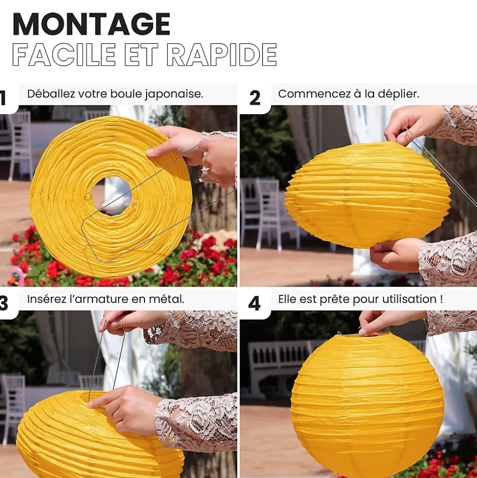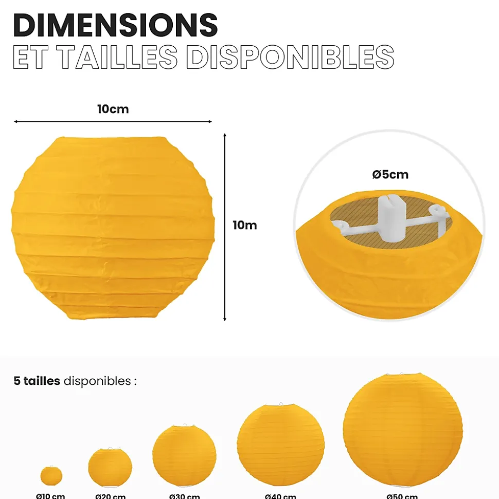 Lot de 12 lanterne papier de 10cm : Une décoration poétique pour tous vos évènementsFini de chercher d’autres idées pour embellir votre lieu de fête, les lanternes chinoises en papier de soie de SkyLantern.fr, vont vous permettre de créer un cadre poétique et authentique en quelques minutes. Epatez vos invités en utilisant votre sens du détail, puis composez en suivant vos idées. Votre lot de 12 boules papier orange de 10 cm devrait vous surprendre grâce à l’éclat de ses teintes sans oublier sa jolie forme qui s’intègre dans tout lieu festif.Lanterne japonaise pour déco mariage orange 10 cm : comment l’utiliser ?Ce type de boule chinoise est pratique pour les mariages, une Bar Mitzvah, une decoration anniversaire. Nos boules papier sont simples à déplier, il ne vous faudra pas longtemps pour décorer votre salle de couleur orange. Le montage ne réclame pas d’outil compliqué. Pour un meilleur rendu, vous pouvez suspendre la suspension luminaire avec du fil de pêche ou de la cordelette. N’hésitez pas à faire passer un filin parcourant les hauteurs. Ces articles se marient bien avec les autres produits SkyLantern, les lampions LED, les étoiles, ou les rosaces.Si jamais la couleur orange n’est pas la couleur dominante dans votre thème, vous pouvez compléter avec l'n;une des nombreuses teintes disponibles. Mixez différentes tailles en plus du diamètre 20 cm, modèles vendus: de 10 à 50 cm.SkyLantern est une marque française basée à Lille et spécialisée dans la deco japonaise à base de lampion papier. La marque est chaque année mise en avant par le top du top des professionnels de la déco et la presse spécialisée.