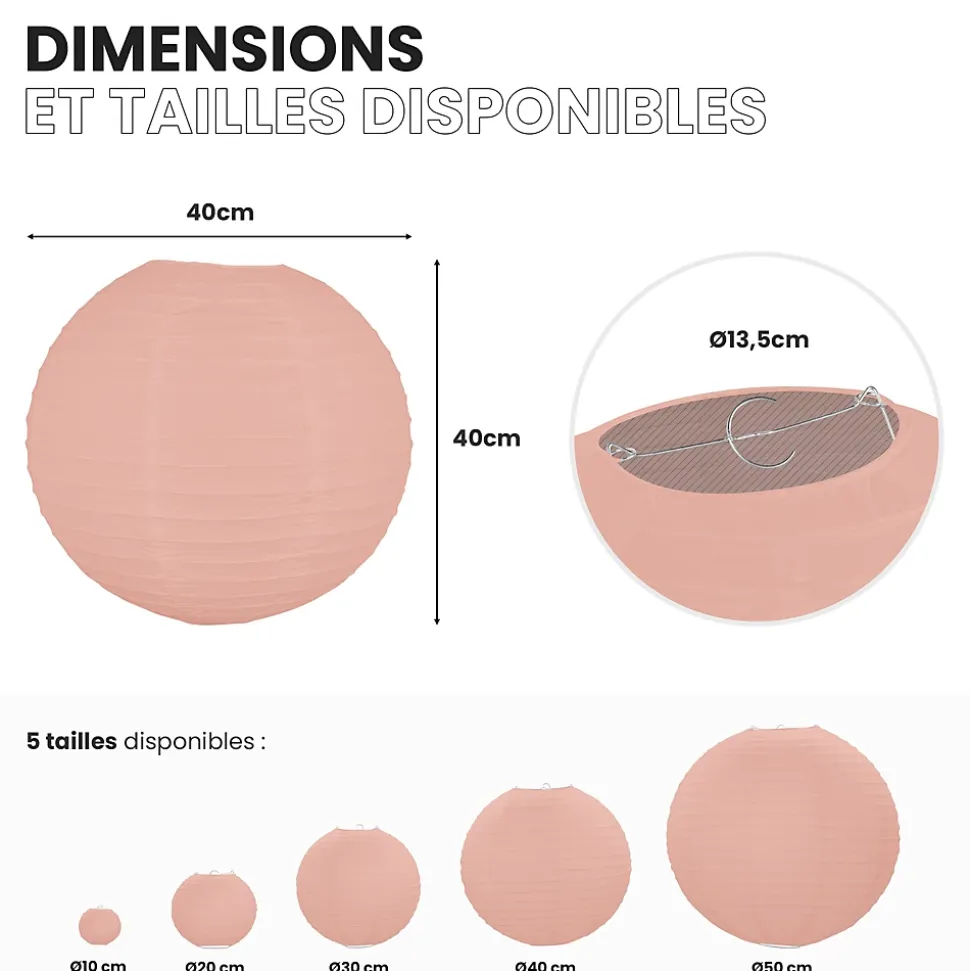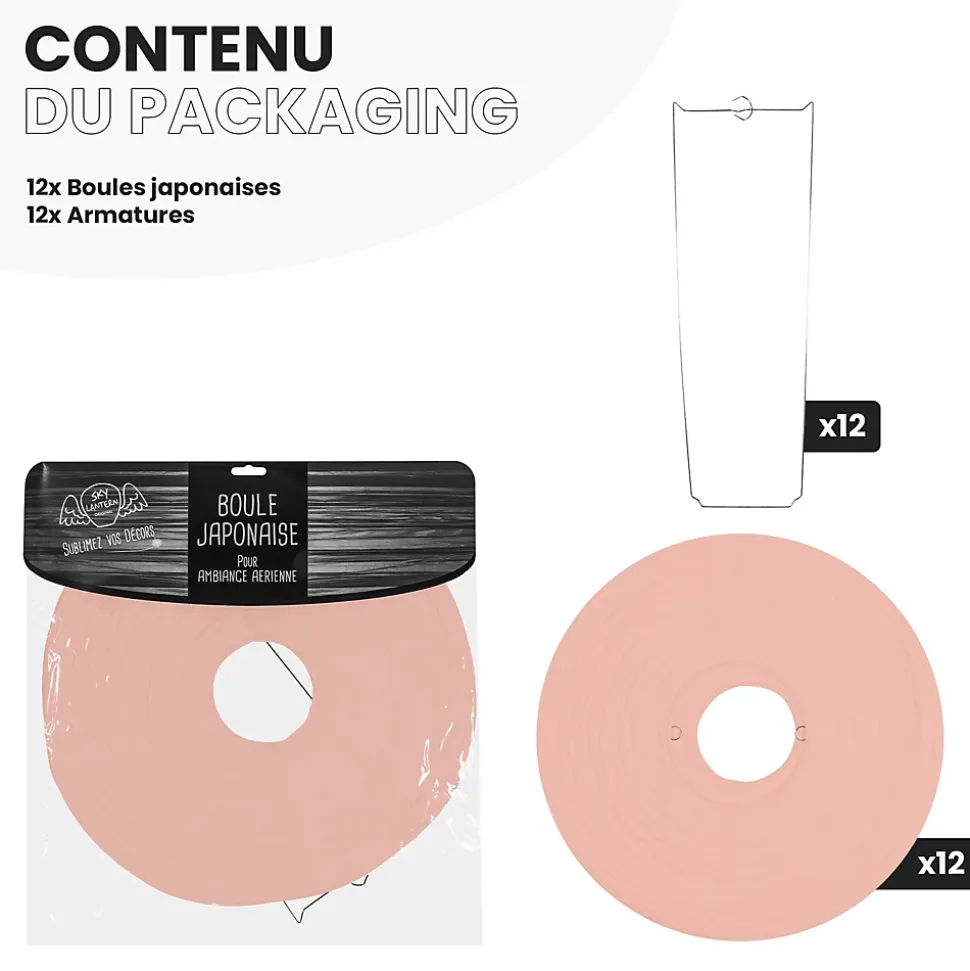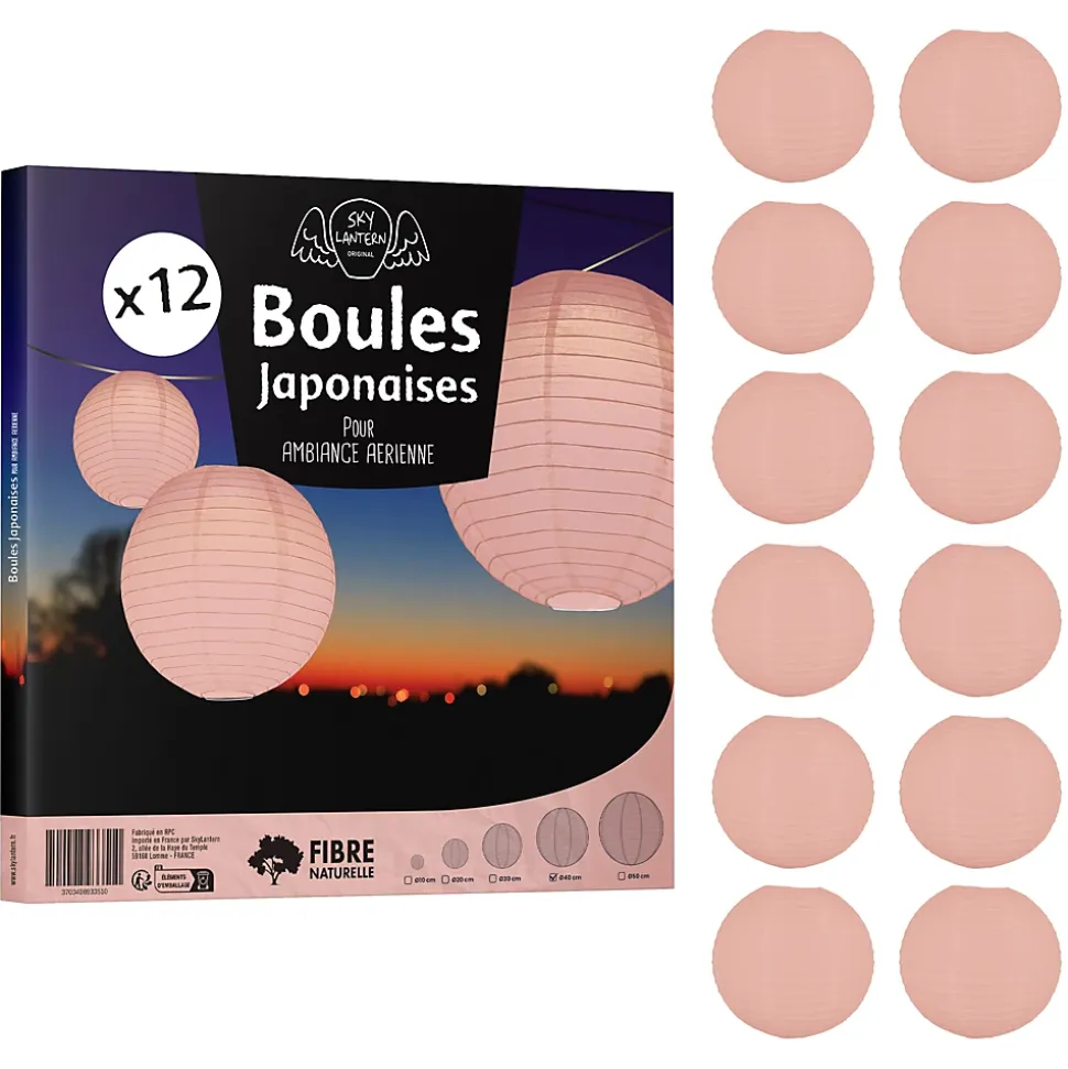 Lot de 12 lanterne papier de 40cm : Une décoration poétique pour tous vos évènementsFini de chercher d’autres idées pour embellir votre lieu de fête, les lanternes chinoises en papier de soie de SkyLantern.fr, vont vous permettre de créer un cadre poétique et authentique en quelques minutes. Epatez vos invités en utilisant votre sens du détail, puis composez en suivant vos idées. Votre lot de 12 boules papier pêche de 40 cm devrait vous surprendre grâce à l’éclat de ses teintes sans oublier sa jolie forme qui s’intègre dans tout lieu festif.Lanterne japonaise pour déco mariage pêche 40 cm : comment l’utiliser ?Ce type de boule chinoise est pratique pour les mariages, une Bar Mitzvah, une decoration anniversaire. Nos boules papier sont simples à déplier, il ne vous faudra pas longtemps pour décorer votre salle de couleur pêche. Le montage ne réclame pas d’outil compliqué. Pour un meilleur rendu, vous pouvez suspendre la suspension luminaire avec du fil de pêche ou de la cordelette. N’hésitez pas à faire passer un filin parcourant les hauteurs. Ces articles se marient bien avec les autres produits SkyLantern, les lampions LED, les étoiles, ou les rosaces.Si jamais la couleur pêche n’est pas la couleur dominante dans votre thème, vous pouvez compléter avec l'une des nombreuses teintes disponibles. Mixez différentes tailles en plus du diamètre 40 cm, modèles vendus: de 10 à 50 cm.SkyLantern est une marque française basée à Lille et spécialisée dans la deco japonaise à base de lampion papier. La marque est chaque année mise en avant par le top du top des professionnels de la déco et la presse spécialisée.