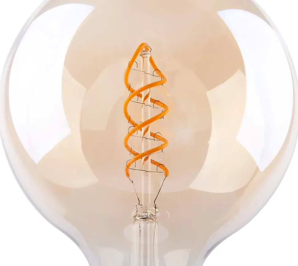 Lot de 2 ampoules LED E27/5W d : 12,5cm »DILLY » – ampoules pour luminaires avec culot E27 Misez sur des ampoules de qualité pour un éclairage optimal. Nos produits se distinguent par leur qualité supérieure et leur longue durée de vie. De plus, vous économisez de l’énergie. Une ampoule de style vintage, au design sphérique, qui n’est pas seulement décorative et esthétique, mais aussi fiable et durable. L’ampoule est en métal et en verre et est disponible en ambre. L’article a une dimension de 12,5 cm x 12,5 cm x 17,5 cm. Cette ampoule E27 dotée de 2 LED haute performance assure un éclairage lumineux et efficace sur le plan énergétique. L’intensité de l’ampoule peut être réglée. Avec une puissance totale de 10 watts et une luminosité de 600 lumens, cette ampoule assure une lumière claire et belle avec une couleur de lumière de 2000 kelvins. Ce produit appartient à la classe 2 et a le type de protection IP20. »