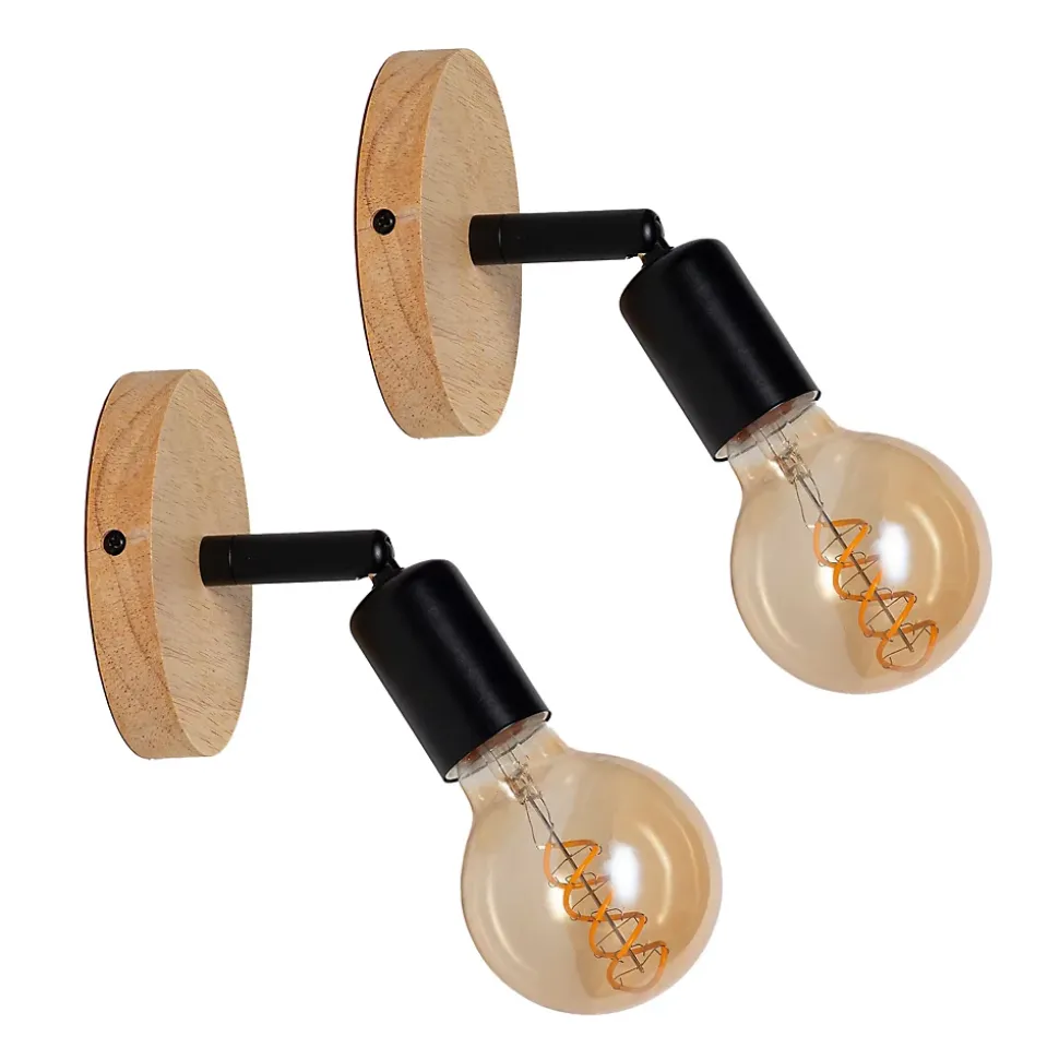 Lot de 2 appliques murales en bois avec douille E27, style vintage et rustique