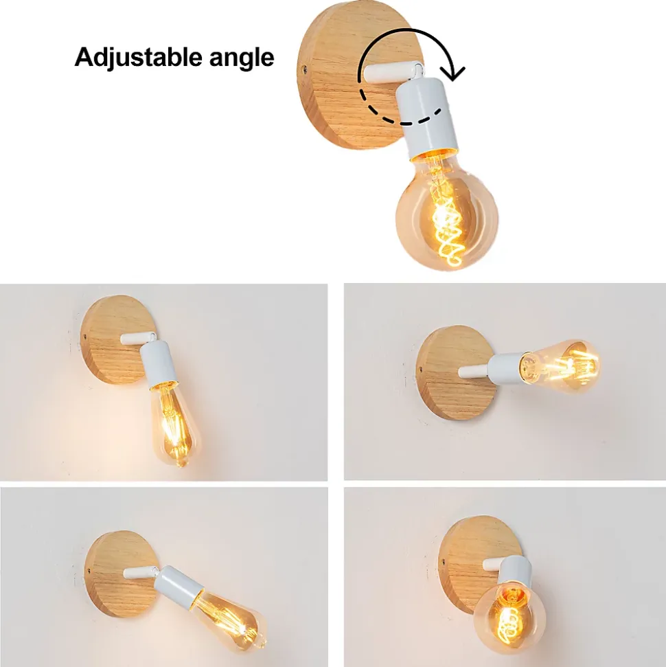 Design moderne et naturel : l’alliance d’un socle en bois massif et d’une structure en métal blanc ou noir s’intègre parfaitement aux intérieurs contemporains, nordiques ou minimalistes.Tête orientable : permet d’orienter la lumière selon vos besoins, idéale comme lampe de lecture, éclairage d’accentuation ou lumière d’ambiance.Douille E27 standard : compatible avec les ampoules LED, décoratives ou de type Edison (ampoule non fournie), offrant une totale liberté dans le choix de l’intensité et de la température de couleur.Éclairage fonctionnel et décoratif : diffuse une lumière ciblée sans compromettre l’élégance du design, même éteint.Installation murale facile : raccordement direct à la prise électrique, sans câble apparent, pour une finition impeccable.Dimensions compactes :Socle en bois : Ø 12 cmBras : 6,5 cmDouille : 6 cmUtilisation polyvalente : idéale pour les chambres, les salons, les couloirs, les bureaux, les têtes de lit ou les coins lecture.