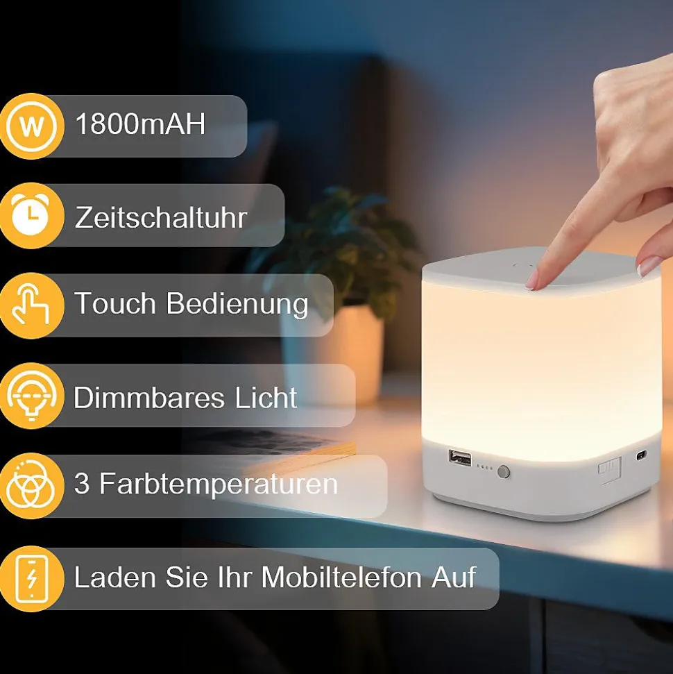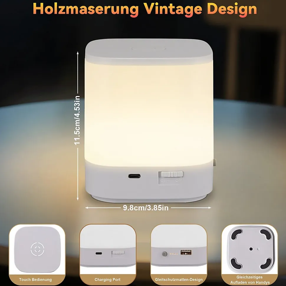 [Lampe de chevet multifonctionnelle] La lampe de chevet LED est dotée d’une gradation tactile et de 3 températures de couleur (3000K-4500K-6000K) pour trouver l’atmosphère d’éclairage la plus agréable selon votre humeur et répondre facilement à vos besoins de détente quotidienne, de sommeil et de soins nocturnes.[Source de lumière douce] La lampe de table sans fil a une lumière douce et agréable, est 100 % sans scintillement, protège les yeux des enfants et des personnes âgées et est très adaptée à l’éclairage nocturne.[Fonction minuterie] Appuyez longuement sur le bouton de minuterie de la lampe de chevet à piles pour régler la veilleuse pour enfants afin qu’elle s’éteigne automatiquement après 15 min/30 min/1 h. C’est le choix idéal pour les soins de bébé, dormir dans la chambre des enfants et le camping en plein air.[Autonomie de la batterie extra longue] La lampe de chevet à intensité variable dispose d’une batterie au lithium intégrée de 1800 mAh qui peut être complètement chargée en seulement 3 heures. peut être complètement chargé et dure jusqu’à 17 à 80 heures, dites adieu aux tracas des charges fréquentes. De plus, la lampe tactile est équipée d’un port de chargement USB pour permettre le chargement des téléphones portables et des tablettes.[Cadeau idéal] La lampe de table LED est un cadeau parfait pour les amis et la famille, parfaite pour créer une atmosphère relaxante dans la chambre, la chambre de bébé, le bureau et le camping, même pendant le yoga, au restaurant ou lors d’un pique-nique en plein air.: